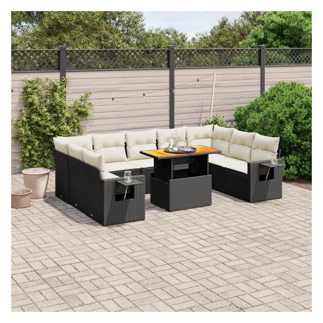 Salon de jardin 10 pcs avec coussins noir résine tressée