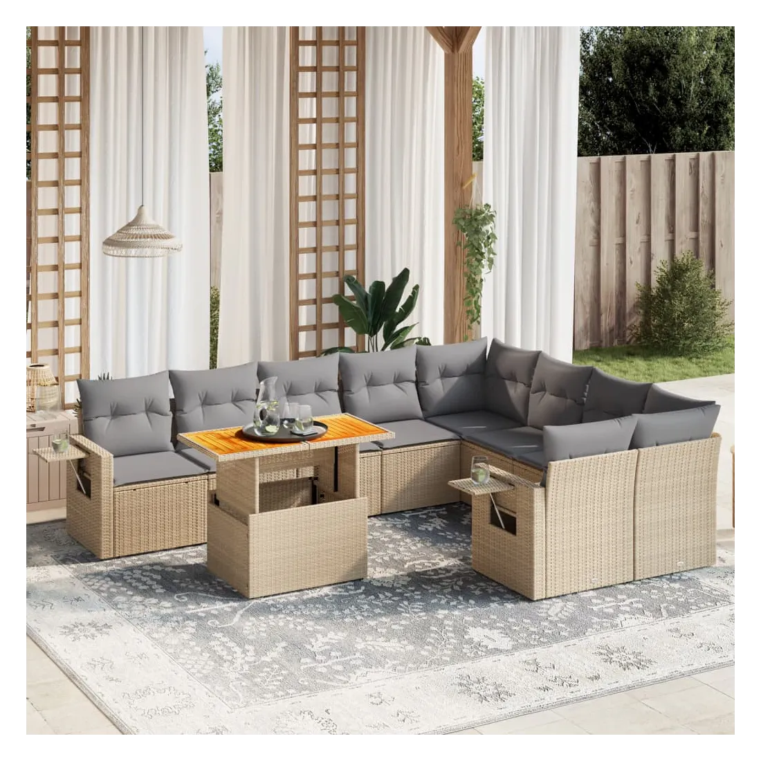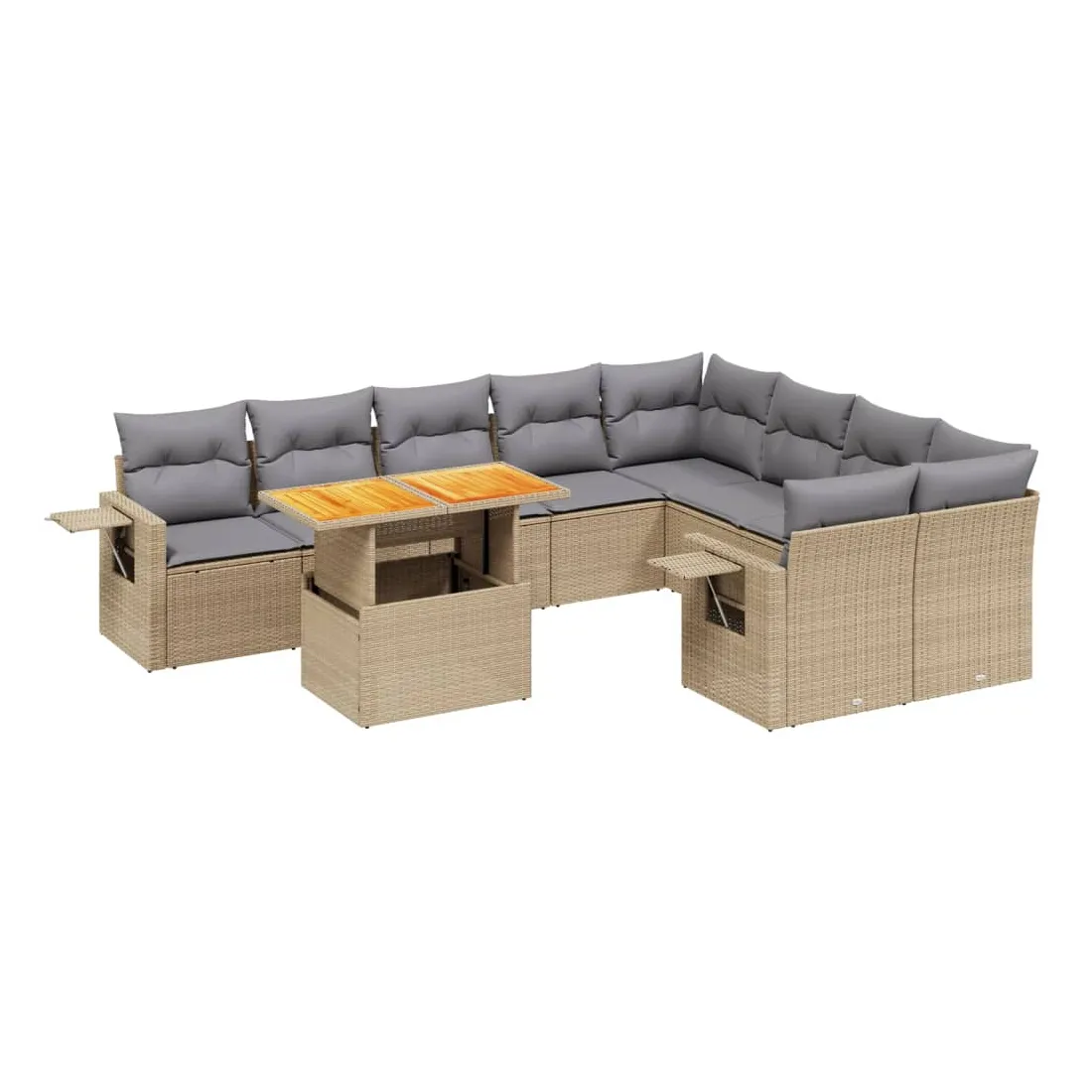 Salon de jardin avec coussins 10 pcs beige résine tressée