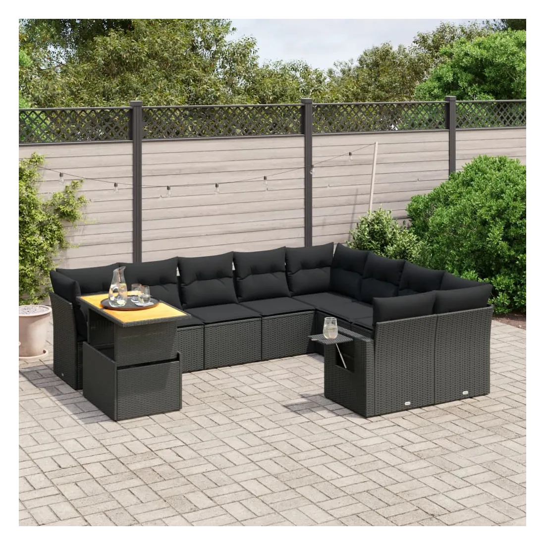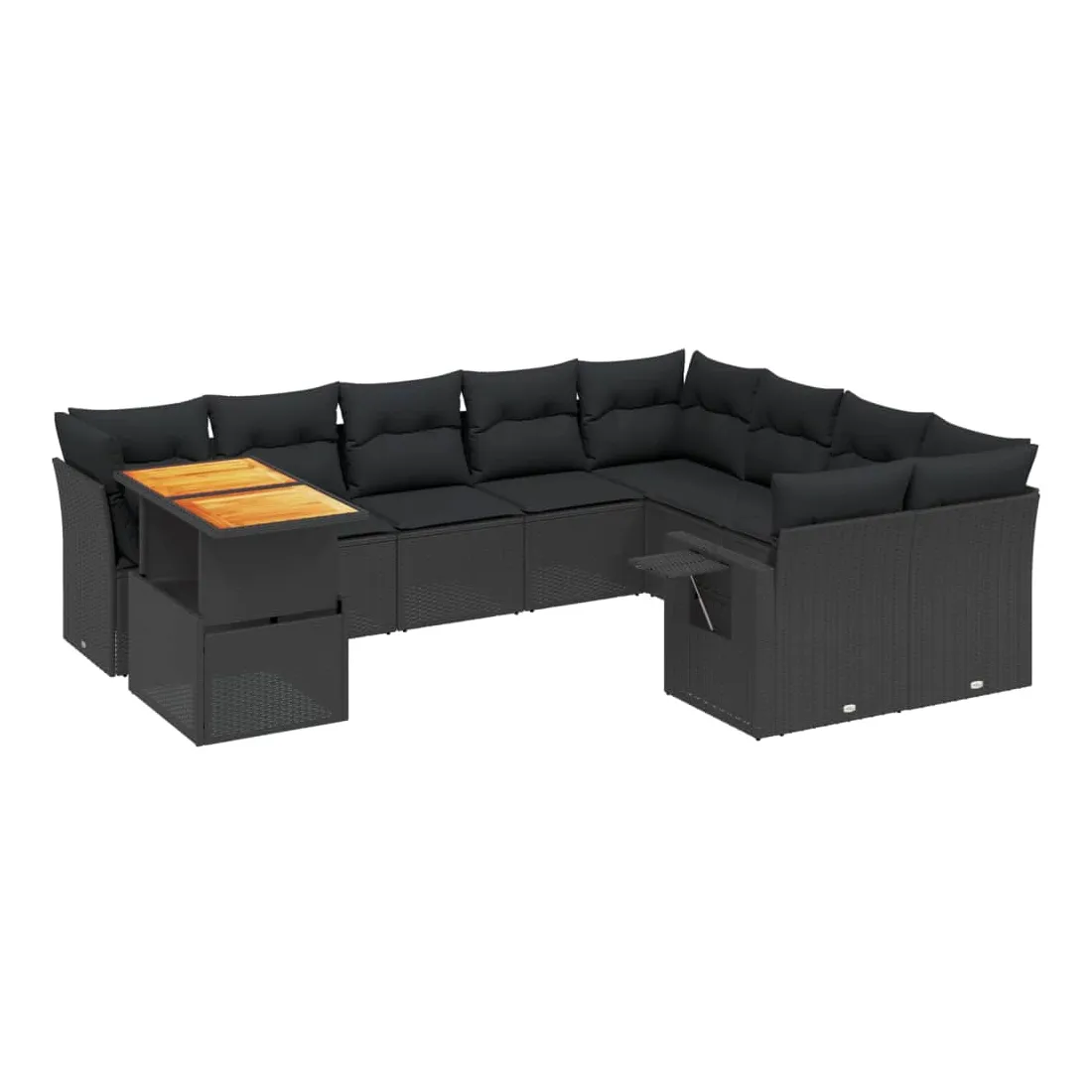 Salon de jardin 10 pcs avec coussins noir résine tressée
