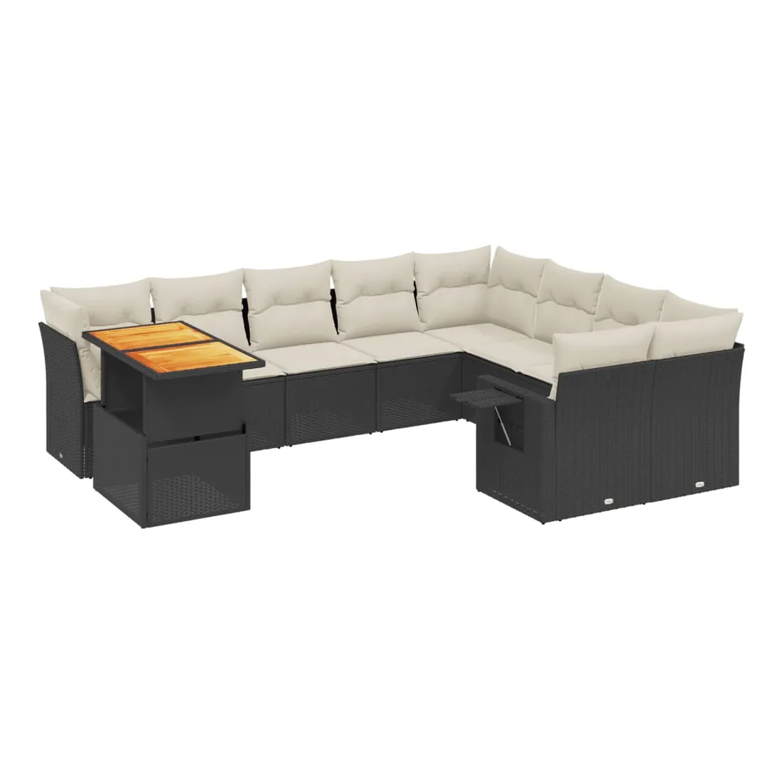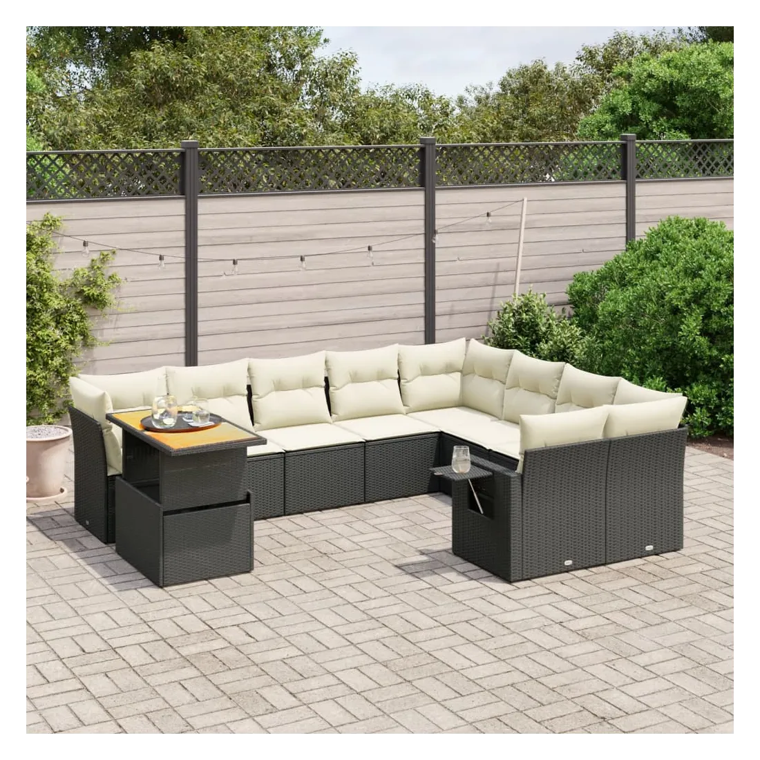 Cet ensemble de canapés de jardin est le complément parfait de votre arrière-cour, terrasse ou patio, offrant un espace confortable et accueillant pour discuter avec la famille et les amis ou simplement se détendre et profiter de l'extérieur. Matériau durable : la résine tressée, également connue sous le nom de poly rotin, est un matériau synthétique solide et nécessitant peu d'entretien qui ressemble au rotin naturel. Il est léger, facile à nettoyer et couramment utilisé pour les meubles d'extérieur en raison de sa durabilité et de ses propriétés de résistance aux intempéries.Dessus de table réglable : le dessus de table peut être soulevé pour rendre la table plus haute, ce qui transforme la table d'extérieur d'une table basse à une table de salle à manger. Elle est parfaite pour recevoir des invités ou prendre des repas à l'extérieur.Table d'appoint pratique : ce mobilier d'extérieur comprend une table d'appoint pliable avec un ressort à gaz sur les accoudoirs, offrant un endroit pratique pour garder vos essentiels à portée de main.Housse amovible et lavable : ces coussins de siège sont dotés de housses amovibles pour un lavage et un entretien faciles.Conception modulaire : cet ensemble de meubles d'extérieur a une conception modulaire, ce qui le rend complètement flexible et facile à déplacer, afin que vous puissiez créer un agencement de meubles d'extérieur personnalisé. Bon à savoir :Pour que vos meubles d'extérieur restent beaux, nous vous recommandons de les protéger avec une housse imperméable.