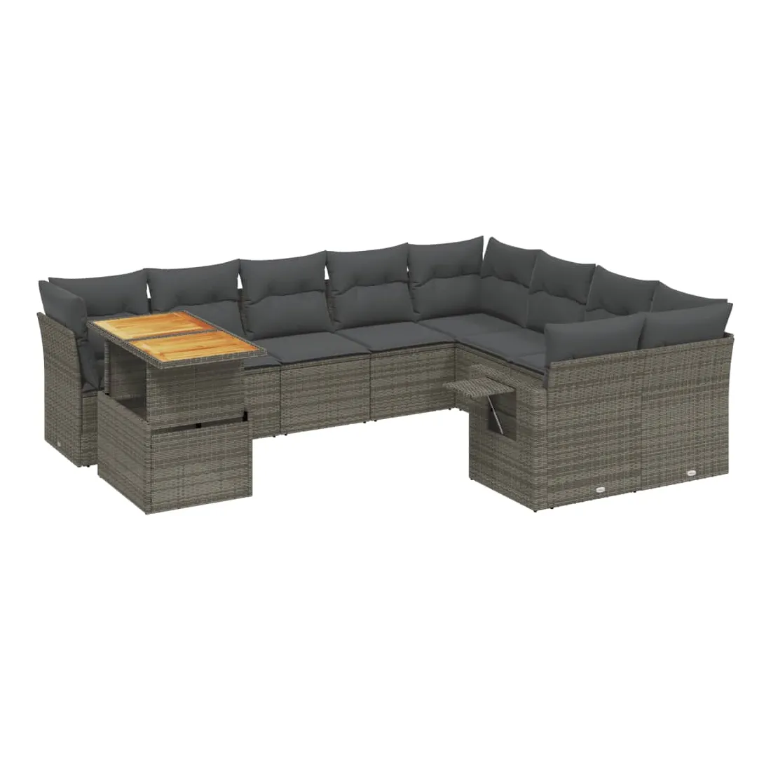 Cet ensemble de canapés de jardin est le complément parfait de votre arrière-cour, terrasse ou patio, offrant un espace confortable et accueillant pour discuter avec la famille et les amis ou simplement se détendre et profiter de l'extérieur. Matériau durable : la résine tressée, également connue sous le nom de poly rotin, est un matériau synthétique solide et nécessitant peu d'entretien qui ressemble au rotin naturel. Il est léger, facile à nettoyer et couramment utilisé pour les meubles d'extérieur en raison de sa durabilité et de ses propriétés de résistance aux intempéries.Dessus de table réglable : le dessus de table peut être soulevé pour rendre la table plus haute, ce qui transforme la table d'extérieur d'une table basse à une table de salle à manger. Elle est parfaite pour recevoir des invités ou prendre des repas à l'extérieur.Table d'appoint pratique : ce mobilier d'extérieur comprend une table d'appoint pliable avec un ressort à gaz sur les accoudoirs, offrant un endroit pratique pour garder vos essentiels à portée de main.Housse amovible et lavable : ces coussins de siège sont dotés de housses amovibles pour un lavage et un entretien faciles.Conception modulaire : cet ensemble de meubles d'extérieur a une conception modulaire, ce qui le rend complètement flexible et facile à déplacer, afin que vous puissiez créer un agencement de meubles d'extérieur personnalisé. Bon à savoir :Pour que vos meubles d'extérieur restent beaux, nous vous recommandons de les protéger avec une housse imperméable.