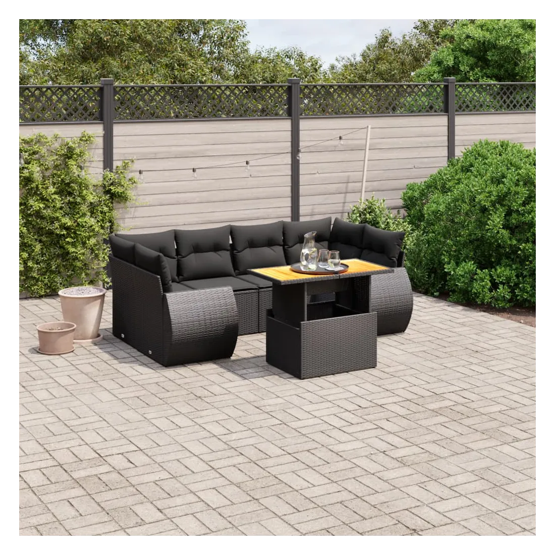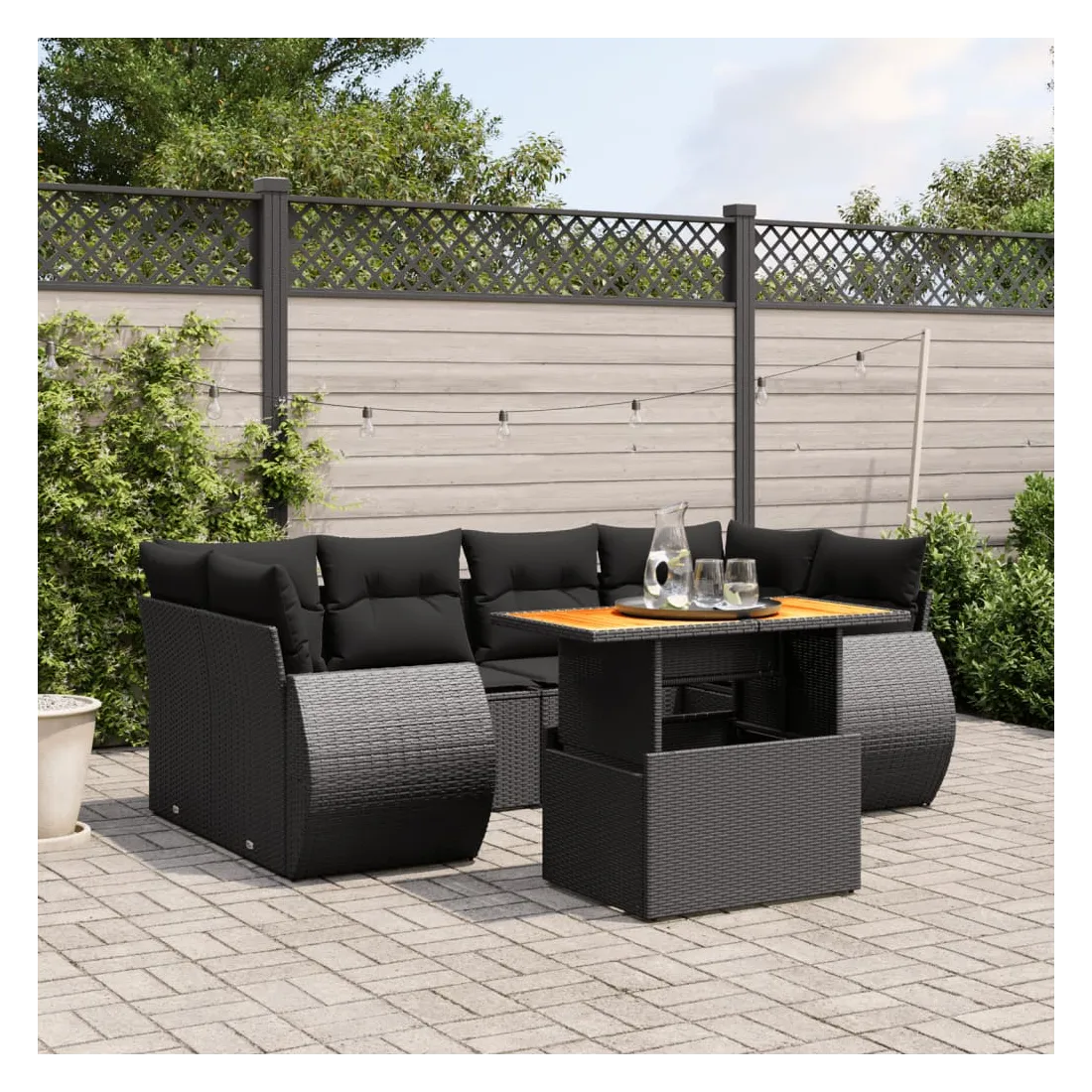 Cet ensemble de canapés de jardin est le complément parfait de votre arrière-cour, terrasse ou patio, offrant un espace confortable et accueillant pour discuter avec la famille et les amis ou simplement se détendre et profiter de l'extérieur. Matériau durable : la résine tressée, également connue sous le nom de poly rotin, est un matériau synthétique solide et nécessitant peu d'entretien qui ressemble au rotin naturel. Il est léger, facile à nettoyer et couramment utilisé pour les meubles d'extérieur en raison de sa durabilité et de ses propriétés de résistance aux intempéries.Dessus de table réglable : le dessus de table peut être soulevé pour rendre la table plus haute, ce qui transforme la table d'extérieur d'une table basse à une table de salle à manger. Elle est parfaite pour recevoir des invités ou prendre des repas à l'extérieur.Expérience d'assise confortable : ce mobilier d'extérieur, doté de coussins épais, offre une expérience d'assise confortable.Housse amovible et lavable : ces coussins de siège sont dotés de housses amovibles pour un lavage et un entretien faciles.Conception modulaire : cet ensemble de meubles d'extérieur a une conception modulaire, ce qui le rend complètement flexible et facile à déplacer, afin que vous puissiez créer un agencement de meubles d'extérieur personnalisé. Bon à savoir :Pour que vos meubles d'extérieur restent beaux, nous vous recommandons de les protéger avec une housse imperméable.