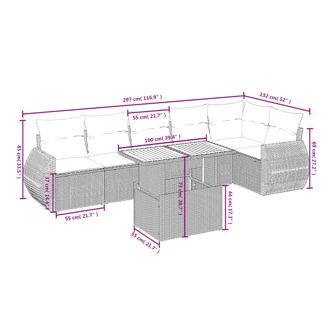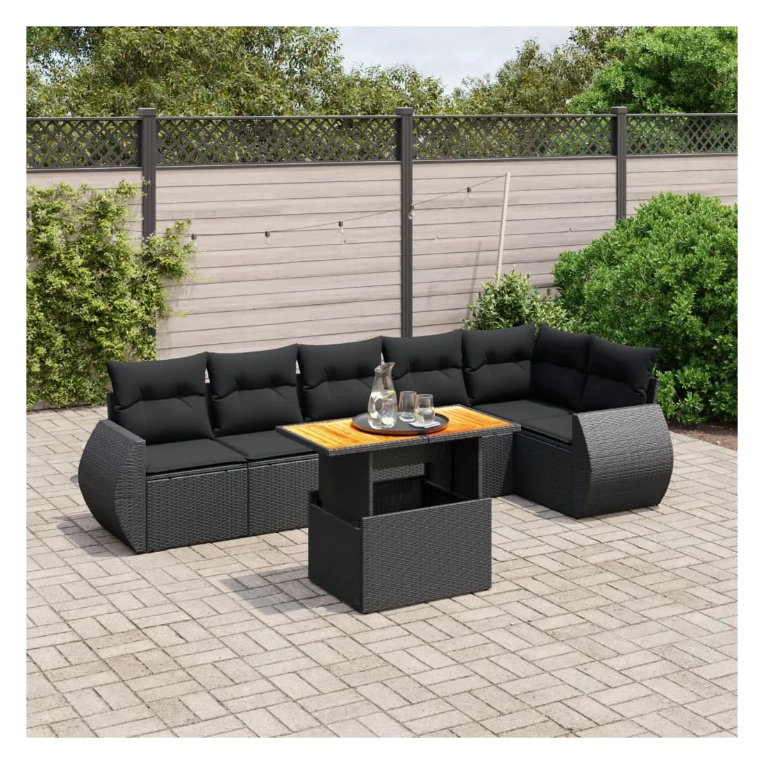 Cet ensemble de canapés de jardin est le complément parfait de votre arrière-cour, terrasse ou patio, offrant un espace confortable et accueillant pour discuter avec la famille et les amis ou simplement se détendre et profiter de l'extérieur. Matériau durable : la résine tressée, également connue sous le nom de poly rotin, est un matériau synthétique solide et nécessitant peu d'entretien qui ressemble au rotin naturel. Il est léger, facile à nettoyer et couramment utilisé pour les meubles d'extérieur en raison de sa durabilité et de ses propriétés de résistance aux intempéries.Dessus de table réglable : le dessus de table peut être soulevé pour rendre la table plus haute, ce qui transforme la table d'extérieur d'une table basse à une table de salle à manger. Elle est parfaite pour recevoir des invités ou prendre des repas à l'extérieur.Expérience d'assise confortable : ce mobilier d'extérieur, doté de coussins épais, offre une expérience d'assise confortable.Housse amovible et lavable : ces coussins de siège sont dotés de housses amovibles pour un lavage et un entretien faciles.Conception modulaire : cet ensemble de meubles d'extérieur a une conception modulaire, ce qui le rend complètement flexible et facile à déplacer, afin que vous puissiez créer un agencement de meubles d'extérieur personnalisé. Bon à savoir :Pour que vos meubles d'extérieur restent beaux, nous vous recommandons de les protéger avec une housse imperméable.