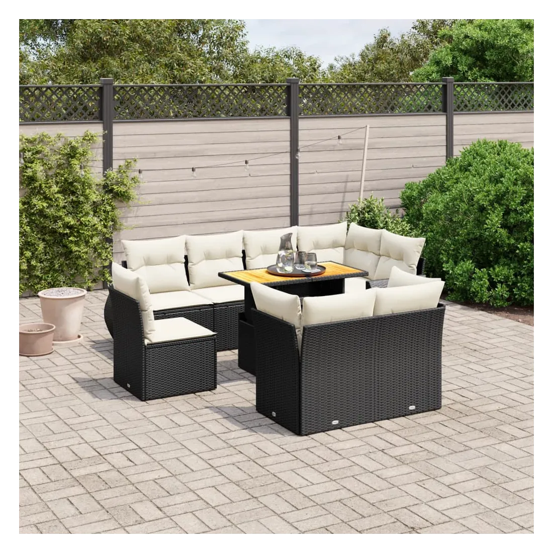 Cet ensemble de canapés de jardin est le complément parfait de votre arrière-cour, terrasse ou patio, offrant un espace confortable et accueillant pour discuter avec la famille et les amis ou simplement se détendre et profiter de l'extérieur. Matériau durable : la résine tressée, également connue sous le nom de poly rotin, est un matériau synthétique solide et nécessitant peu d'entretien qui ressemble au rotin naturel. Il est léger, facile à nettoyer et couramment utilisé pour les meubles d'extérieur en raison de sa durabilité et de ses propriétés de résistance aux intempéries.Dessus de table réglable : le dessus de table peut être soulevé pour rendre la table plus haute, ce qui transforme la table d'extérieur d'une table basse à une table de salle à manger. Elle est parfaite pour recevoir des invités ou prendre des repas à l'extérieur.Expérience d'assise confortable : ce mobilier d'extérieur, doté de coussins épais, offre une expérience d'assise confortable.Housse amovible et lavable : ces coussins de siège sont dotés de housses amovibles pour un lavage et un entretien faciles.Conception modulaire : cet ensemble de meubles d'extérieur a une conception modulaire, ce qui le rend complètement flexible et facile à déplacer, afin que vous puissiez créer un agencement de meubles d'extérieur personnalisé. Bon à savoir :Pour que vos meubles d'extérieur restent beaux, nous vous recommandons de les protéger avec une housse imperméable.