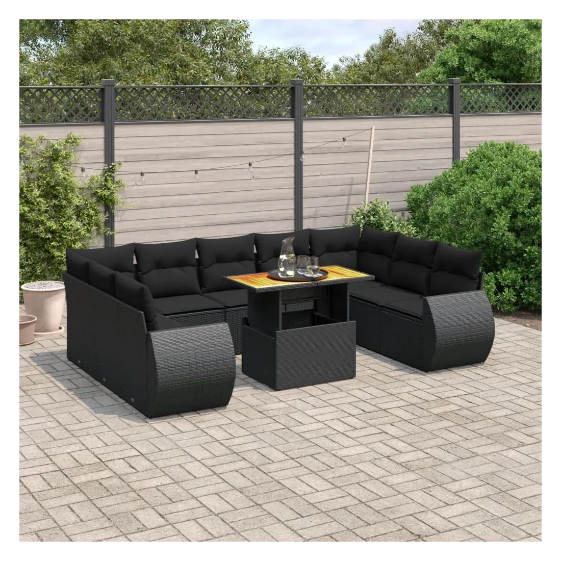 Cet ensemble de canapés de jardin est le complément parfait de votre arrière-cour, terrasse ou patio, offrant un espace confortable et accueillant pour discuter avec la famille et les amis ou simplement se détendre et profiter de l'extérieur. Matériau durable : la résine tressée, également connue sous le nom de poly rotin, est un matériau synthétique solide et nécessitant peu d'entretien qui ressemble au rotin naturel. Il est léger, facile à nettoyer et couramment utilisé pour les meubles d'extérieur en raison de sa durabilité et de ses propriétés de résistance aux intempéries.Dessus de table réglable : le dessus de table peut être soulevé pour rendre la table plus haute, ce qui transforme la table d'extérieur d'une table basse à une table de salle à manger. Elle est parfaite pour recevoir des invités ou prendre des repas à l'extérieur.Expérience d'assise confortable : ce mobilier d'extérieur, doté de coussins épais, offre une expérience d'assise confortable.Housse amovible et lavable : ces coussins de siège sont dotés de housses amovibles pour un lavage et un entretien faciles.Conception modulaire : cet ensemble de meubles d'extérieur a une conception modulaire, ce qui le rend complètement flexible et facile à déplacer, afin que vous puissiez créer un agencement de meubles d'extérieur personnalisé. Bon à savoir :Pour que vos meubles d'extérieur restent beaux, nous vous recommandons de les protéger avec une housse imperméable.