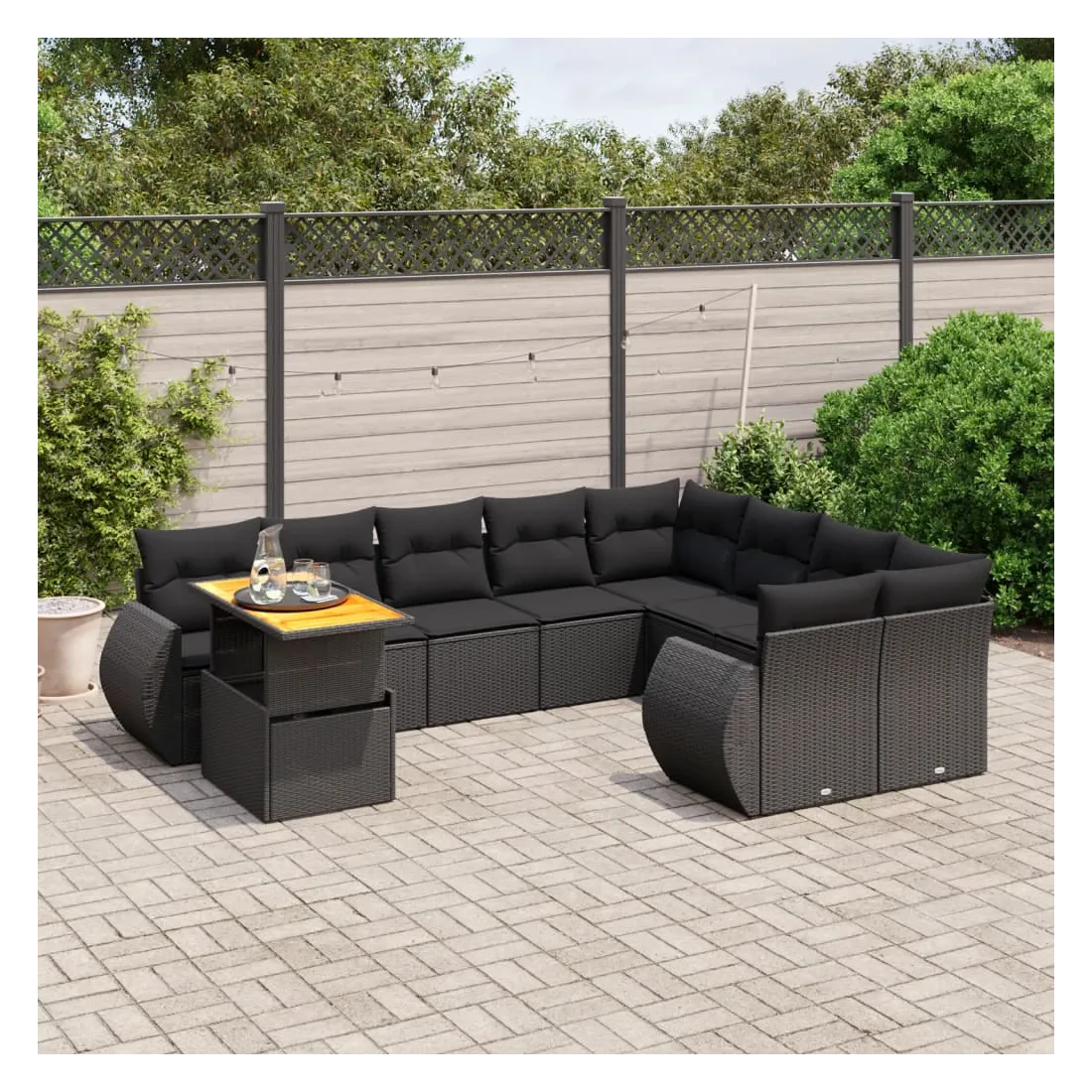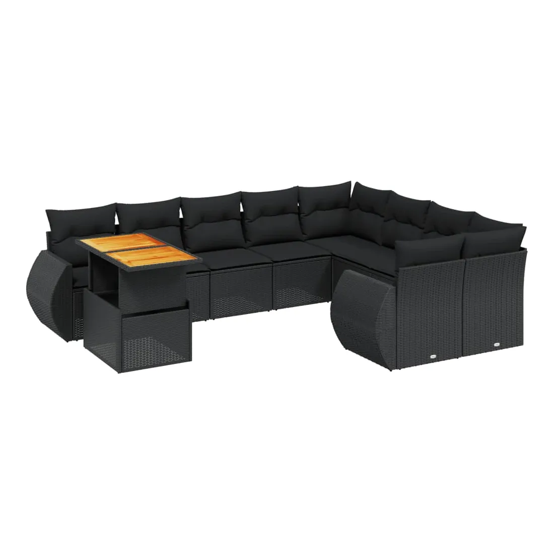Salon de jardin 10 pcs avec coussins noir résine tressée