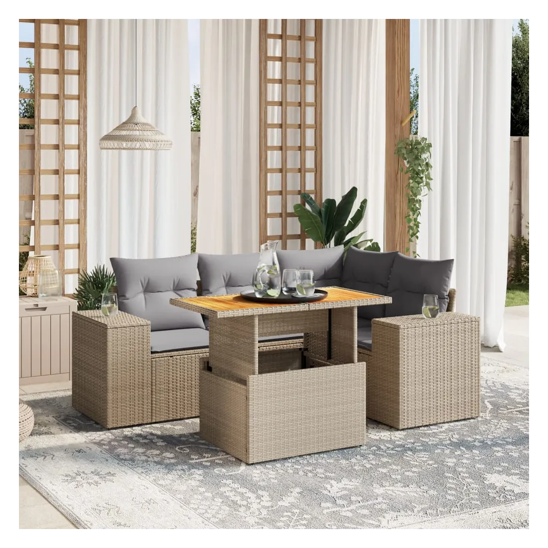 Cet ensemble de canapés de jardin est le complément parfait de votre arrière-cour, terrasse ou patio, offrant un espace confortable et accueillant pour discuter avec la famille et les amis ou simplement se détendre et profiter de l'extérieur. Matériau durable : la résine tressée, également connue sous le nom de poly rotin, est un matériau synthétique solide et nécessitant peu d'entretien qui ressemble au rotin naturel. Il est léger, facile à nettoyer et couramment utilisé pour les meubles d'extérieur en raison de sa durabilité et de ses propriétés de résistance aux intempéries.Dessus de table réglable : le dessus de table peut être soulevé pour rendre la table plus haute, ce qui transforme la table d'extérieur d'une table basse à une table de salle à manger. Elle est parfaite pour recevoir des invités ou prendre des repas à l'extérieur.Expérience d'assise confortable : ce mobilier d'extérieur, doté de coussins épais, offre une expérience d'assise confortable.Housse amovible et lavable : ces coussins de siège sont dotés de housses amovibles pour un lavage et un entretien faciles.Conception modulaire : cet ensemble de meubles d'extérieur a une conception modulaire, ce qui le rend complètement flexible et facile à déplacer, afin que vous puissiez créer un agencement de meubles d'extérieur personnalisé. Bon à savoir :Pour que vos meubles d'extérieur restent beaux, nous vous recommandons de les protéger avec une housse imperméable.