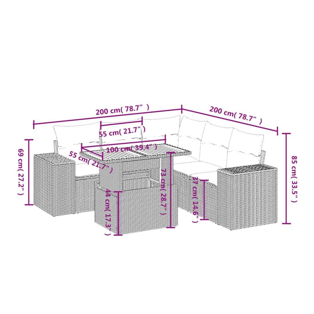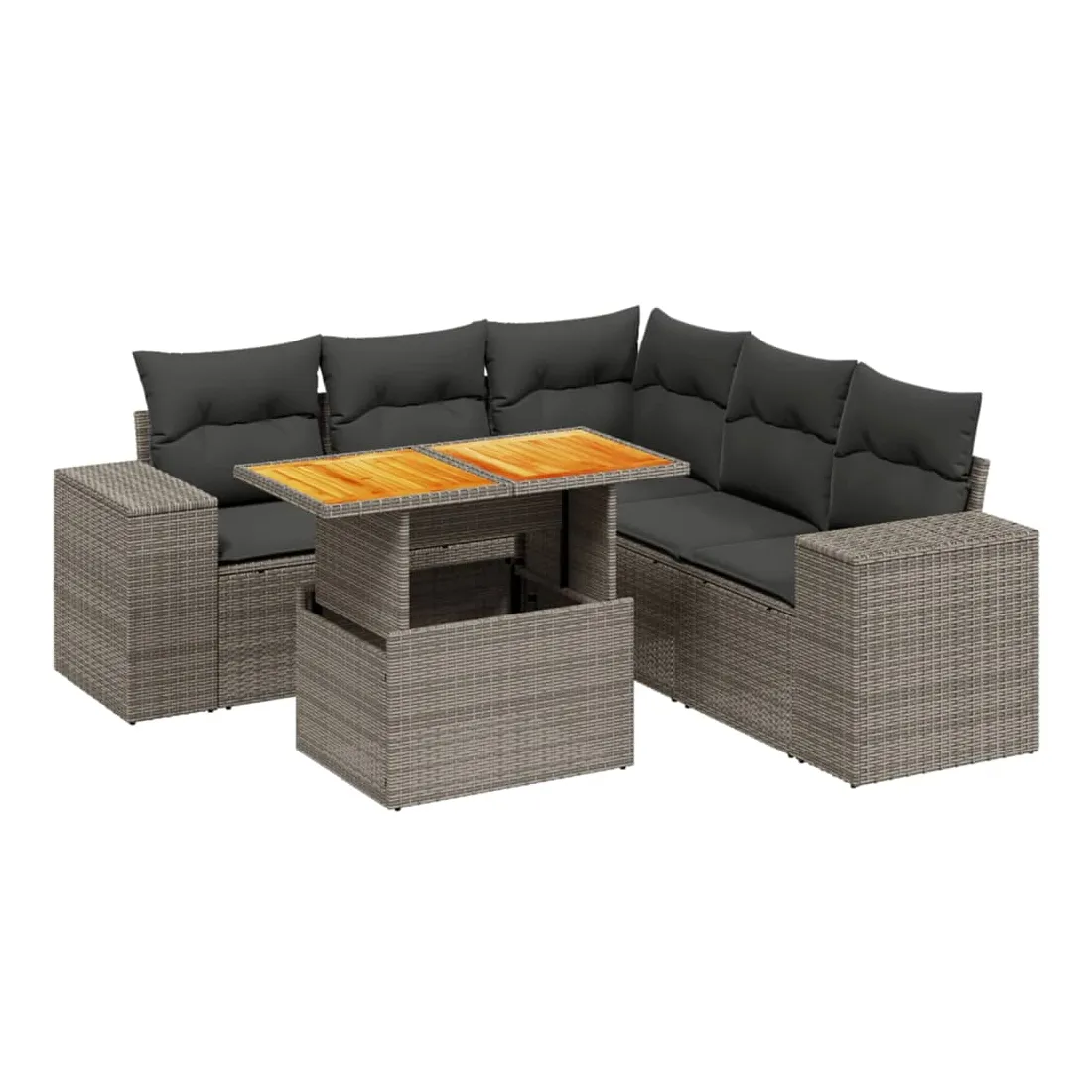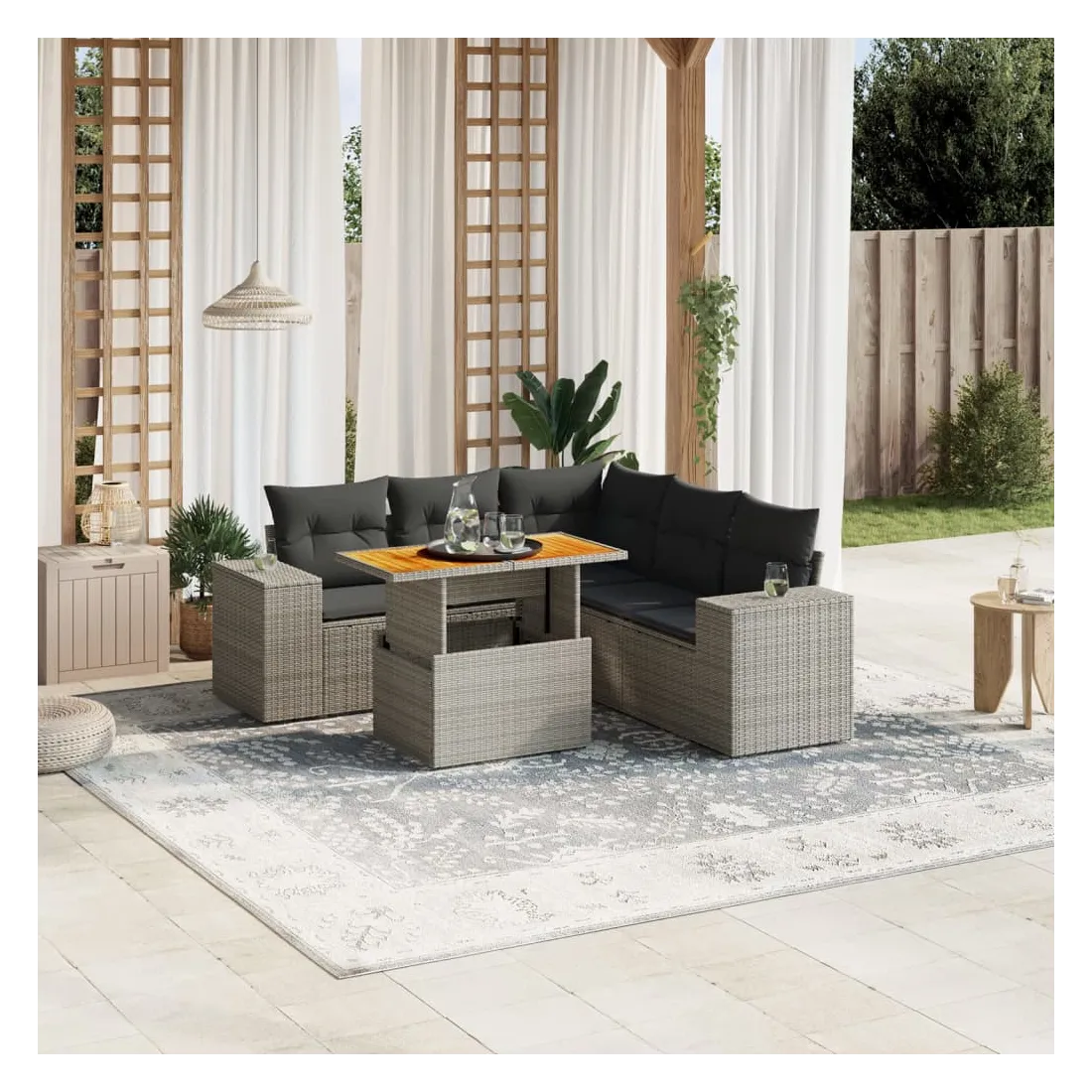 Salon de jardin 6 pcs avec coussins gris résine tressée