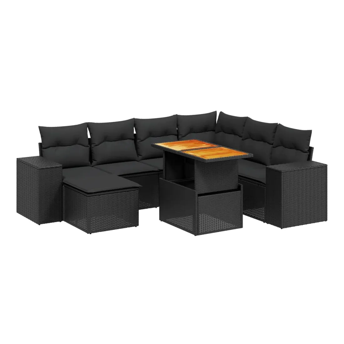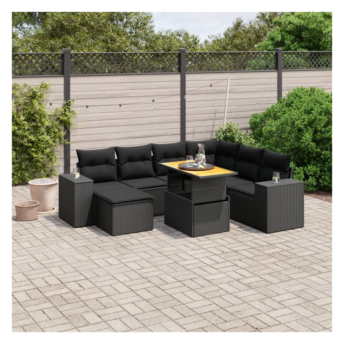 Salon de jardin 8 pcs avec coussins noir résine tressée