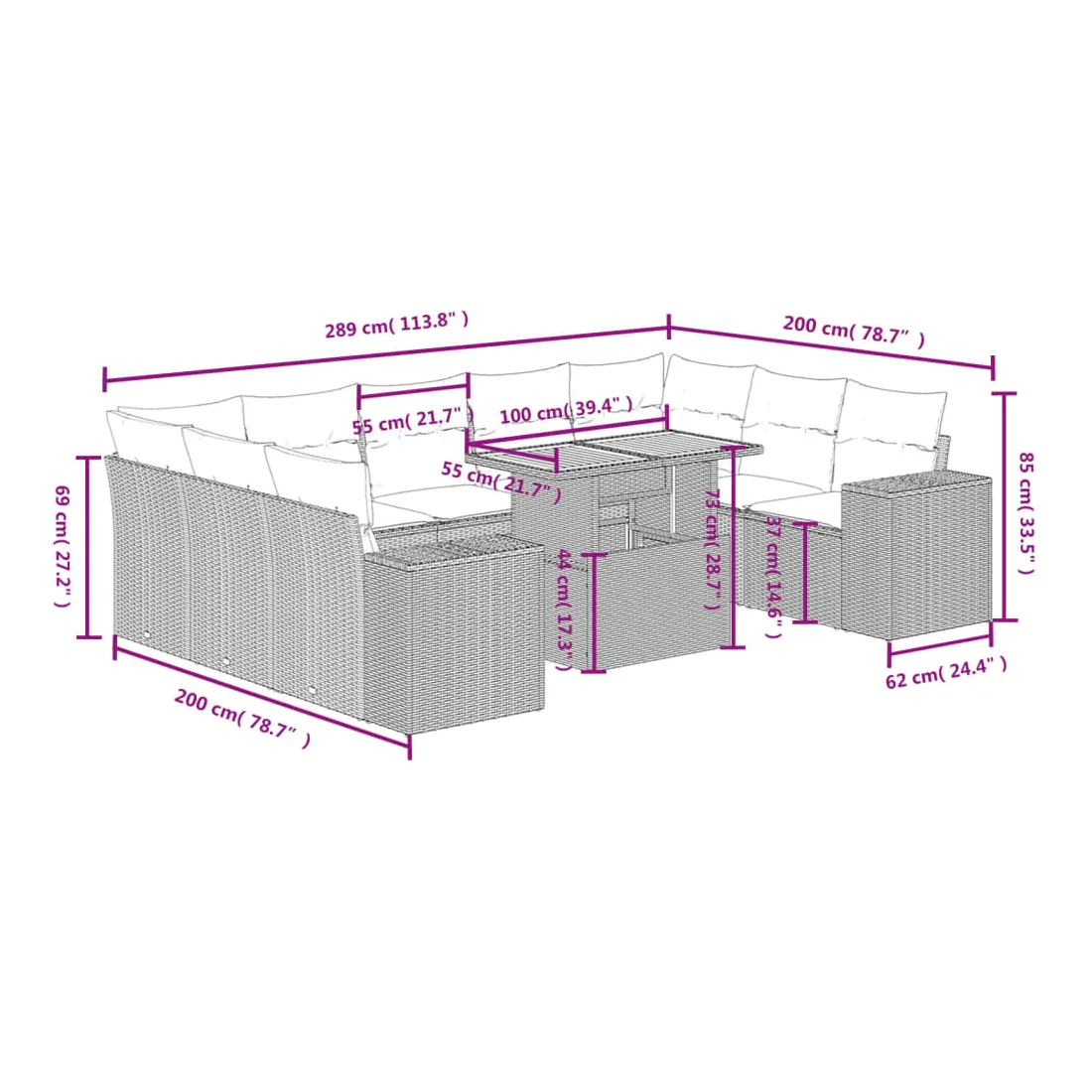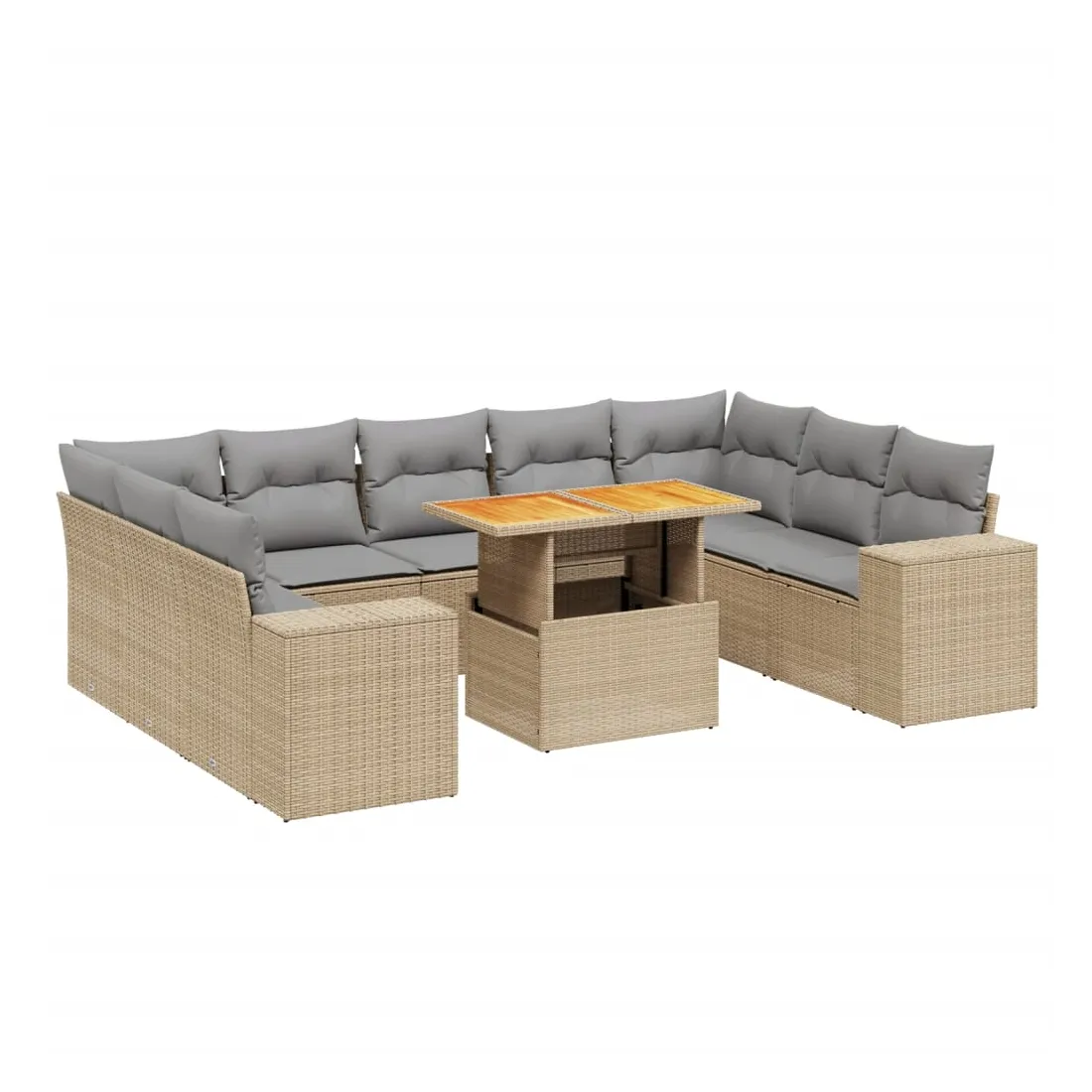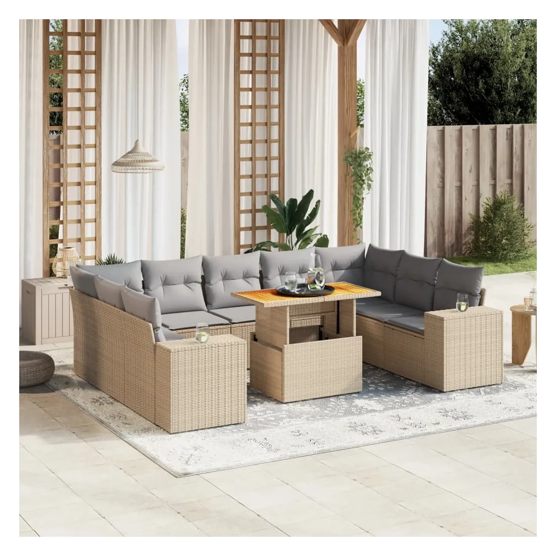 Salon de jardin avec coussins 10 pcs beige résine tressée