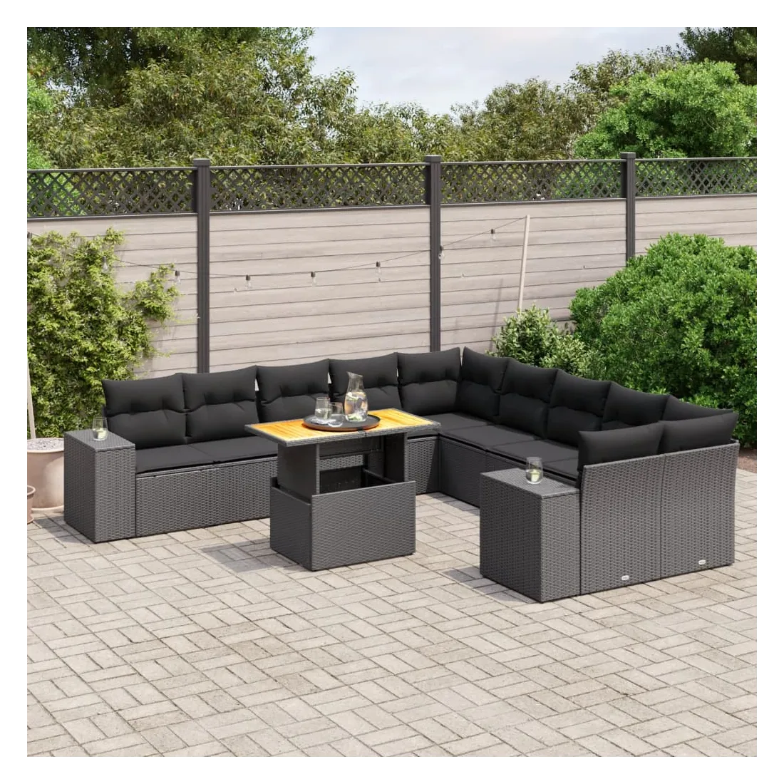 Cet ensemble de canapés de jardin est le complément parfait de votre arrière-cour, terrasse ou patio, offrant un espace confortable et accueillant pour discuter avec la famille et les amis ou simplement se détendre et profiter de l'extérieur. Matériau durable : la résine tressée, également connue sous le nom de poly rotin, est un matériau synthétique solide et nécessitant peu d'entretien qui ressemble au rotin naturel. Il est léger, facile à nettoyer et couramment utilisé pour les meubles d'extérieur en raison de sa durabilité et de ses propriétés de résistance aux intempéries.Dessus de table réglable : le dessus de table peut être soulevé pour rendre la table plus haute, ce qui transforme la table d'extérieur d'une table basse à une table de salle à manger. Elle est parfaite pour recevoir des invités ou prendre des repas à l'extérieur.Expérience d'assise confortable : ce mobilier d'extérieur, doté de coussins épais, offre une expérience d'assise confortable.Housse amovible et lavable : ces coussins de siège sont dotés de housses amovibles pour un lavage et un entretien faciles.Conception modulaire : cet ensemble de meubles d'extérieur a une conception modulaire, ce qui le rend complètement flexible et facile à déplacer, afin que vous puissiez créer un agencement de meubles d'extérieur personnalisé. Bon à savoir :Pour que vos meubles d'extérieur restent beaux, nous vous recommandons de les protéger avec une housse imperméable.