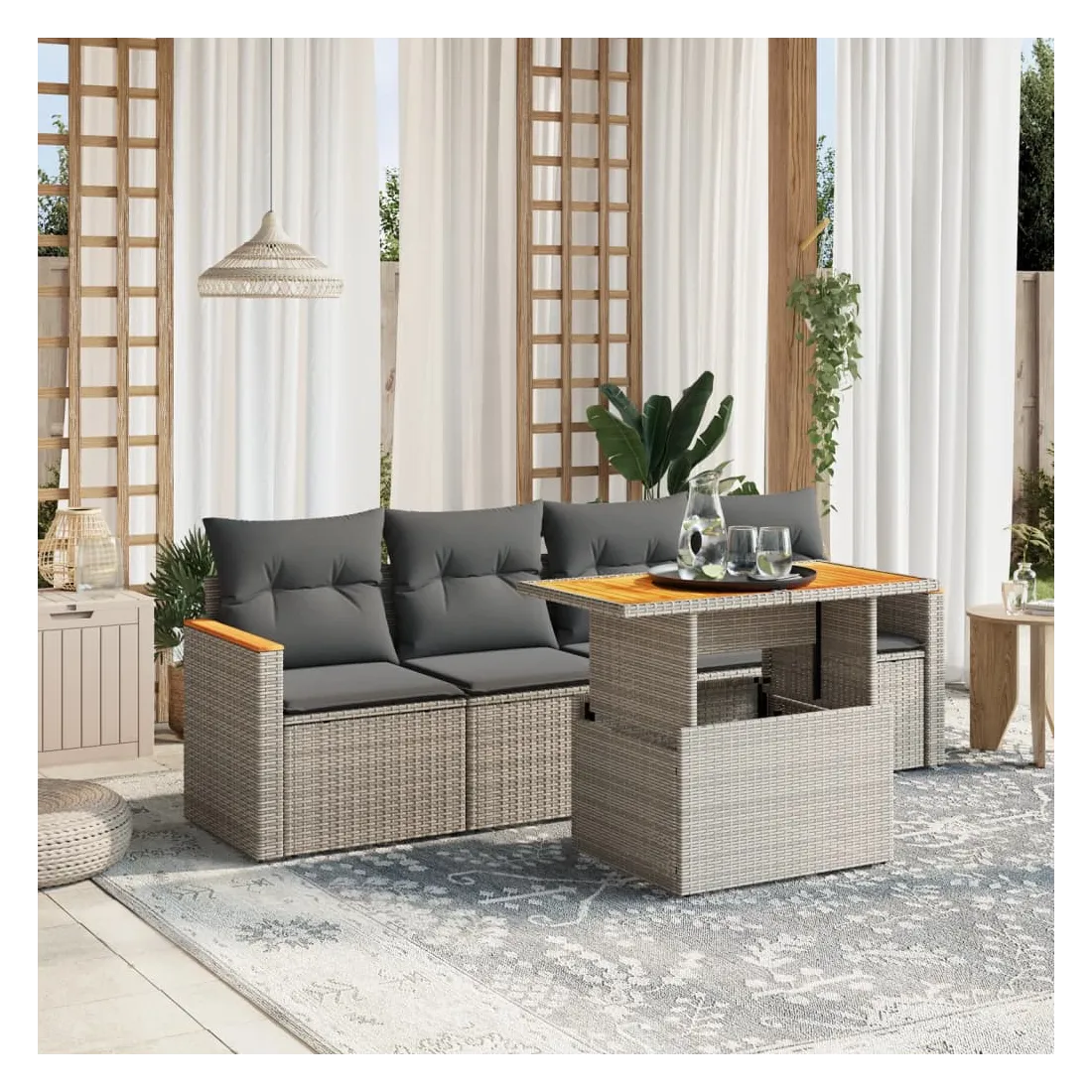 Cet ensemble de canapés de jardin est le complément parfait de votre arrière-cour, terrasse ou patio, offrant un espace confortable et accueillant pour discuter avec la famille et les amis ou simplement se détendre et profiter de l'extérieur. Matériau durable : la résine tressée, également connue sous le nom de poly rotin, est un matériau synthétique solide et nécessitant peu d'entretien qui ressemble au rotin naturel. Il est léger, facile à nettoyer et couramment utilisé pour les meubles d'extérieur en raison de sa durabilité et de ses propriétés de résistance aux intempéries.Dessus de table réglable : le dessus de table peut être soulevé pour rendre la table plus haute, ce qui transforme la table d'extérieur d'une table basse à une table de salle à manger. Elle est parfaite pour recevoir des invités ou prendre des repas à l'extérieur.Expérience d'assise confortable : ce mobilier d'extérieur, doté de coussins épais, offre une expérience d'assise confortable.Housse amovible et lavable : ces coussins de siège sont dotés de housses amovibles pour un lavage et un entretien faciles.Conception modulaire : cet ensemble de meubles d'extérieur a une conception modulaire, ce qui le rend complètement flexible et facile à déplacer, afin que vous puissiez créer un agencement de meubles d'extérieur personnalisé. Bon à savoir :Pour que vos meubles d'extérieur restent beaux, nous vous recommandons de les protéger avec une housse imperméable.