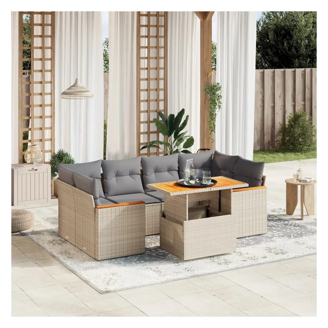 Cet ensemble de canapés de jardin est le complément parfait de votre arrière-cour, terrasse ou patio, offrant un espace confortable et accueillant pour discuter avec la famille et les amis ou simplement se détendre et profiter de l'extérieur. Matériau durable : la résine tressée, également connue sous le nom de poly rotin, est un matériau synthétique solide et nécessitant peu d'entretien qui ressemble au rotin naturel. Il est léger, facile à nettoyer et couramment utilisé pour les meubles d'extérieur en raison de sa durabilité et de ses propriétés de résistance aux intempéries.Dessus de table réglable : le dessus de table peut être soulevé pour rendre la table plus haute, ce qui transforme la table d'extérieur d'une table basse à une table de salle à manger. Elle est parfaite pour recevoir des invités ou prendre des repas à l'extérieur.Expérience d'assise confortable : ce mobilier d'extérieur, doté de coussins épais, offre une expérience d'assise confortable.Housse amovible et lavable : ces coussins de siège sont dotés de housses amovibles pour un lavage et un entretien faciles.Conception modulaire : cet ensemble de meubles d'extérieur a une conception modulaire, ce qui le rend complètement flexible et facile à déplacer, afin que vous puissiez créer un agencement de meubles d'extérieur personnalisé. Bon à savoir :Pour que vos meubles d'extérieur restent beaux, nous vous recommandons de les protéger avec une housse imperméable.