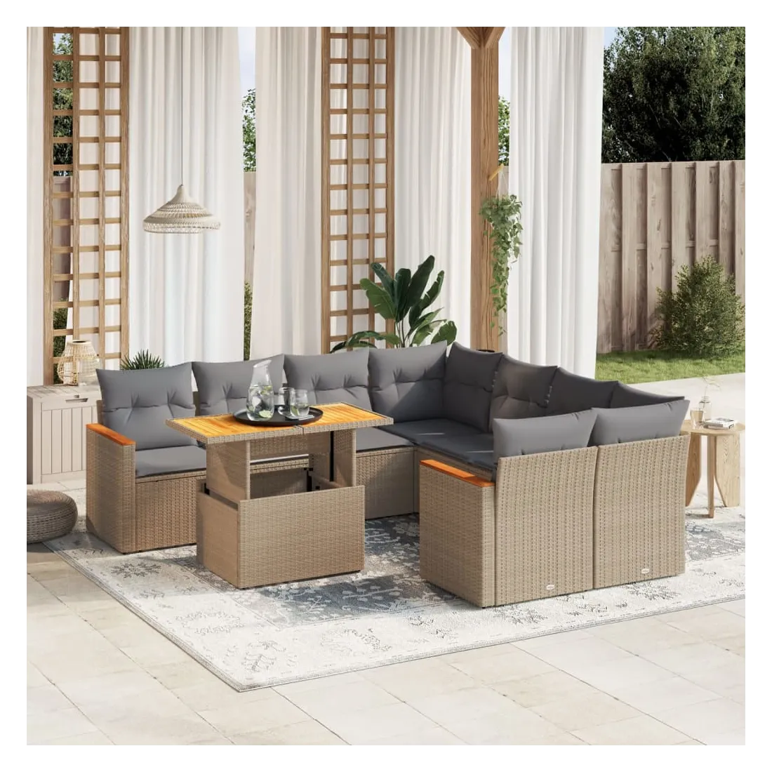 Cet ensemble de canapés de jardin est le complément parfait de votre arrière-cour, terrasse ou patio, offrant un espace confortable et accueillant pour discuter avec la famille et les amis ou simplement se détendre et profiter de l'extérieur. Matériau durable : la résine tressée, également connue sous le nom de poly rotin, est un matériau synthétique solide et nécessitant peu d'entretien qui ressemble au rotin naturel. Il est léger, facile à nettoyer et couramment utilisé pour les meubles d'extérieur en raison de sa durabilité et de ses propriétés de résistance aux intempéries.Dessus de table réglable : le dessus de table peut être soulevé pour rendre la table plus haute, ce qui transforme la table d'extérieur d'une table basse à une table de salle à manger. Elle est parfaite pour recevoir des invités ou prendre des repas à l'extérieur.Expérience d'assise confortable : ce mobilier d'extérieur, doté de coussins épais, offre une expérience d'assise confortable.Housse amovible et lavable : ces coussins de siège sont dotés de housses amovibles pour un lavage et un entretien faciles.Conception modulaire : cet ensemble de meubles d'extérieur a une conception modulaire, ce qui le rend complètement flexible et facile à déplacer, afin que vous puissiez créer un agencement de meubles d'extérieur personnalisé. Bon à savoir :Pour que vos meubles d'extérieur restent beaux, nous vous recommandons de les protéger avec une housse imperméable.