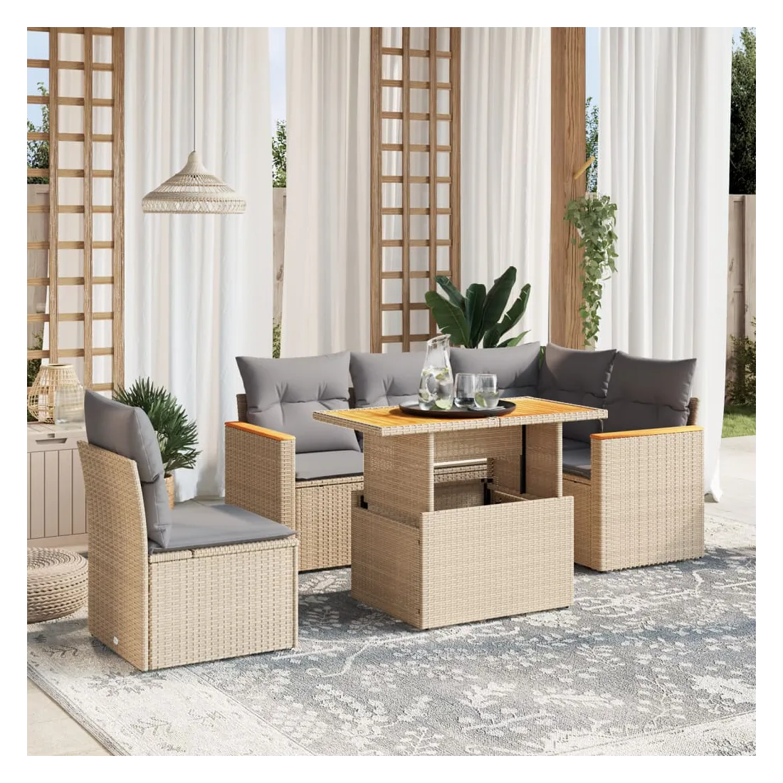 Cet ensemble de canapés de jardin est le complément parfait de votre arrière-cour, terrasse ou patio, offrant un espace confortable et accueillant pour discuter avec la famille et les amis ou simplement se détendre et profiter de l'extérieur. Matériau durable : la résine tressée, également connue sous le nom de poly rotin, est un matériau synthétique solide et nécessitant peu d'entretien qui ressemble au rotin naturel. Il est léger, facile à nettoyer et couramment utilisé pour les meubles d'extérieur en raison de sa durabilité et de ses propriétés de résistance aux intempéries.Dessus de table réglable : le dessus de table peut être soulevé pour rendre la table plus haute, ce qui transforme la table d'extérieur d'une table basse à une table de salle à manger. Elle est parfaite pour recevoir des invités ou prendre des repas à l'extérieur.Expérience d'assise confortable : ce mobilier d'extérieur, doté de coussins épais, offre une expérience d'assise confortable.Housse amovible et lavable : ces coussins de siège sont dotés de housses amovibles pour un lavage et un entretien faciles.Conception modulaire : cet ensemble de meubles d'extérieur a une conception modulaire, ce qui le rend complètement flexible et facile à déplacer, afin que vous puissiez créer un agencement de meubles d'extérieur personnalisé. Bon à savoir :Pour que vos meubles d'extérieur restent beaux, nous vous recommandons de les protéger avec une housse imperméable.