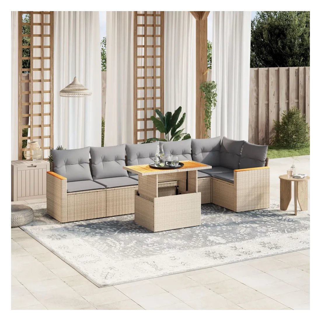 Cet ensemble de canapés de jardin est le complément parfait de votre arrière-cour, terrasse ou patio, offrant un espace confortable et accueillant pour discuter avec la famille et les amis ou simplement se détendre et profiter de l'extérieur. Matériau durable : la résine tressée, également connue sous le nom de poly rotin, est un matériau synthétique solide et nécessitant peu d'entretien qui ressemble au rotin naturel. Il est léger, facile à nettoyer et couramment utilisé pour les meubles d'extérieur en raison de sa durabilité et de ses propriétés de résistance aux intempéries.Dessus de table réglable : le dessus de table peut être soulevé pour rendre la table plus haute, ce qui transforme la table d'extérieur d'une table basse à une table de salle à manger. Elle est parfaite pour recevoir des invités ou prendre des repas à l'extérieur.Expérience d'assise confortable : ce mobilier d'extérieur, doté de coussins épais, offre une expérience d'assise confortable.Housse amovible et lavable : ces coussins de siège sont dotés de housses amovibles pour un lavage et un entretien faciles.Conception modulaire : cet ensemble de meubles d'extérieur a une conception modulaire, ce qui le rend complètement flexible et facile à déplacer, afin que vous puissiez créer un agencement de meubles d'extérieur personnalisé. Bon à savoir :Pour que vos meubles d'extérieur restent beaux, nous vous recommandons de les protéger avec une housse imperméable.