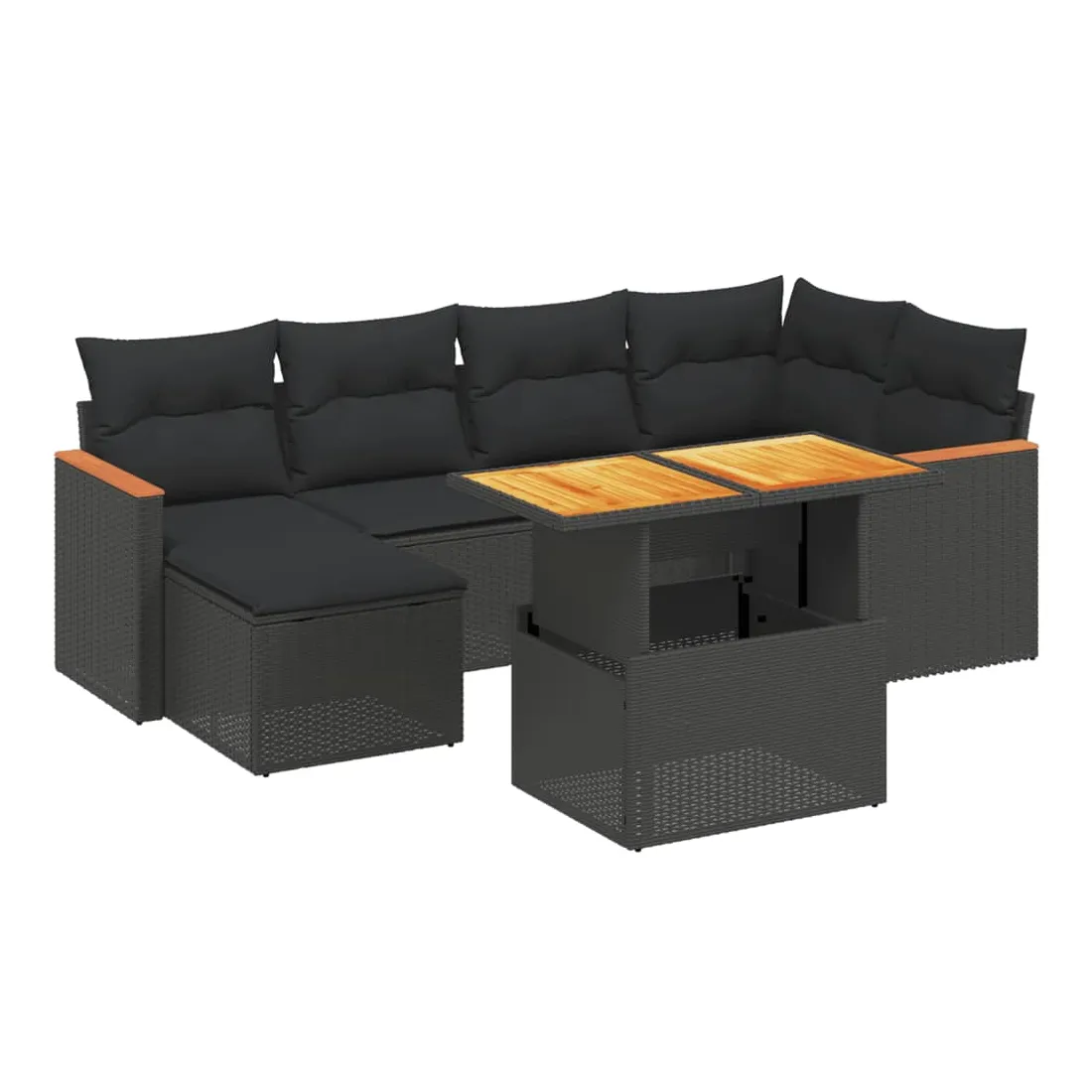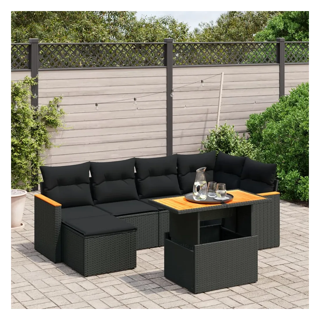 Cet ensemble de canapés de jardin est le complément parfait de votre arrière-cour, terrasse ou patio, offrant un espace confortable et accueillant pour discuter avec la famille et les amis ou simplement se détendre et profiter de l'extérieur. Matériau durable : la résine tressée, également connue sous le nom de poly rotin, est un matériau synthétique solide et nécessitant peu d'entretien qui ressemble au rotin naturel. Il est léger, facile à nettoyer et couramment utilisé pour les meubles d'extérieur en raison de sa durabilité et de ses propriétés de résistance aux intempéries.Dessus de table réglable : le dessus de table peut être soulevé pour rendre la table plus haute, ce qui transforme la table d'extérieur d'une table basse à une table de salle à manger. Elle est parfaite pour recevoir des invités ou prendre des repas à l'extérieur.Expérience d'assise confortable : ce mobilier d'extérieur, doté de coussins épais, offre une expérience d'assise confortable.Housse amovible et lavable : ces coussins de siège sont dotés de housses amovibles pour un lavage et un entretien faciles.Conception modulaire : cet ensemble de meubles d'extérieur a une conception modulaire, ce qui le rend complètement flexible et facile à déplacer, afin que vous puissiez créer un agencement de meubles d'extérieur personnalisé. Bon à savoir :Pour que vos meubles d'extérieur restent beaux, nous vous recommandons de les protéger avec une housse imperméable.