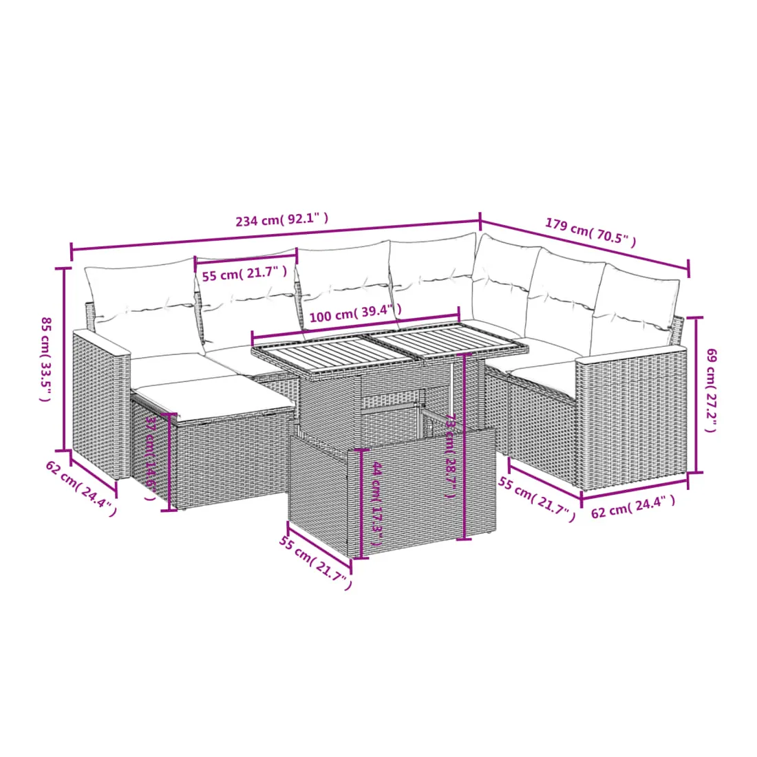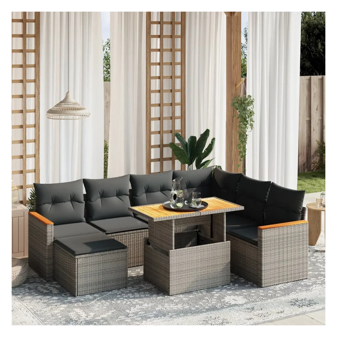 Cet ensemble de canapés de jardin est le complément parfait de votre arrière-cour, terrasse ou patio, offrant un espace confortable et accueillant pour discuter avec la famille et les amis ou simplement se détendre et profiter de l'extérieur. Matériau durable : la résine tressée, également connue sous le nom de poly rotin, est un matériau synthétique solide et nécessitant peu d'entretien qui ressemble au rotin naturel. Il est léger, facile à nettoyer et couramment utilisé pour les meubles d'extérieur en raison de sa durabilité et de ses propriétés de résistance aux intempéries.Dessus de table réglable : le dessus de table peut être soulevé pour rendre la table plus haute, ce qui transforme la table d'extérieur d'une table basse à une table de salle à manger. Elle est parfaite pour recevoir des invités ou prendre des repas à l'extérieur.Expérience d'assise confortable : ce mobilier d'extérieur, doté de coussins épais, offre une expérience d'assise confortable.Housse amovible et lavable : ces coussins de siège sont dotés de housses amovibles pour un lavage et un entretien faciles.Conception modulaire : cet ensemble de meubles d'extérieur a une conception modulaire, ce qui le rend complètement flexible et facile à déplacer, afin que vous puissiez créer un agencement de meubles d'extérieur personnalisé. Bon à savoir :Pour que vos meubles d'extérieur restent beaux, nous vous recommandons de les protéger avec une housse imperméable.
