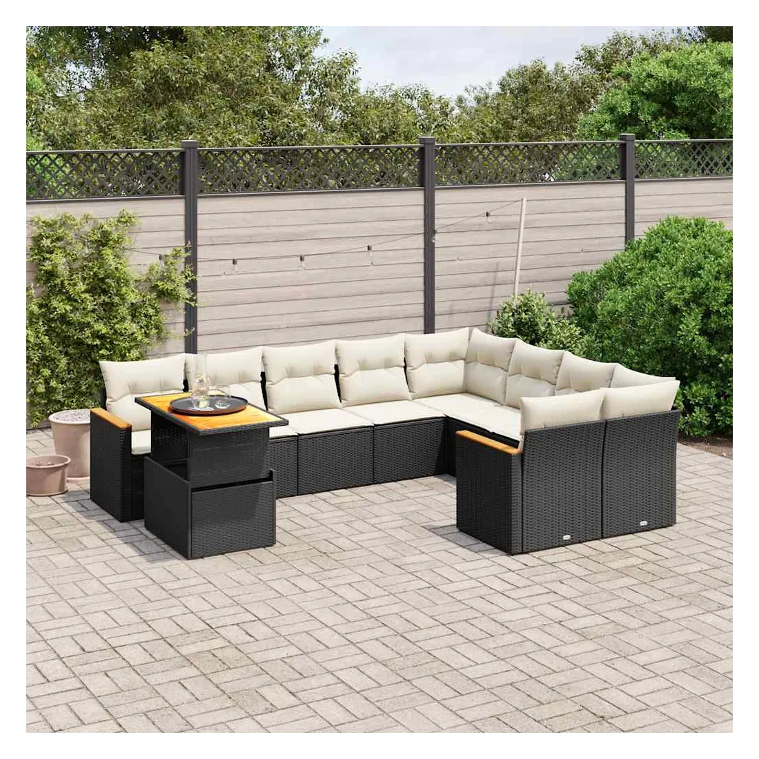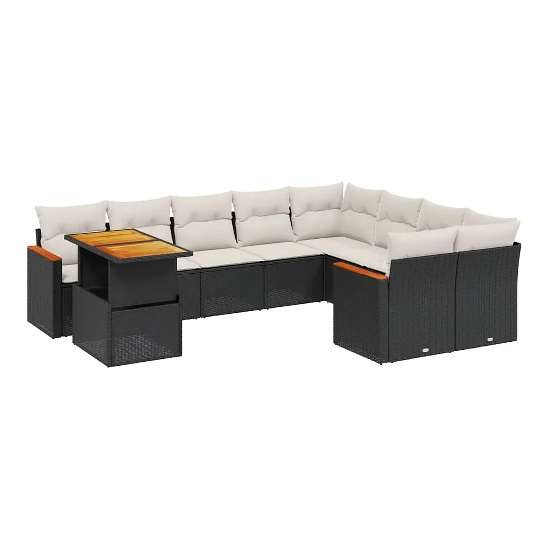 Salon de jardin 10 pcs avec coussins noir résine tressée