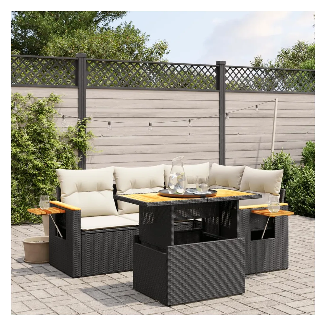 Cet ensemble de canapés de jardin est le complément parfait de votre arrière-cour, terrasse ou patio, offrant un espace confortable et accueillant pour discuter avec la famille et les amis ou simplement se détendre et profiter de l'extérieur. Matériau durable : la résine tressée, également connue sous le nom de poly rotin, est un matériau synthétique solide et nécessitant peu d'entretien qui ressemble au rotin naturel. Il est léger, facile à nettoyer et couramment utilisé pour les meubles d'extérieur en raison de sa durabilité et de ses propriétés de résistance aux intempéries.Dessus de table réglable : le dessus de table peut être soulevé pour rendre la table plus haute, ce qui transforme la table d'extérieur d'une table basse à une table de salle à manger. Elle est parfaite pour recevoir des invités ou prendre des repas à l'extérieur.Table d'appoint pratique : ce mobilier d'extérieur comprend une table d'appoint pliable avec un ressort à gaz sur les accoudoirs, offrant un endroit pratique pour garder vos essentiels à portée de main.Housse amovible et lavable : ces coussins de siège sont dotés de housses amovibles pour un lavage et un entretien faciles.Conception modulaire : cet ensemble de meubles d'extérieur a une conception modulaire, ce qui le rend complètement flexible et facile à déplacer, afin que vous puissiez créer un agencement de meubles d'extérieur personnalisé. Bon à savoir :Pour que vos meubles d'extérieur restent beaux, nous vous recommandons de les protéger avec une housse imperméable.