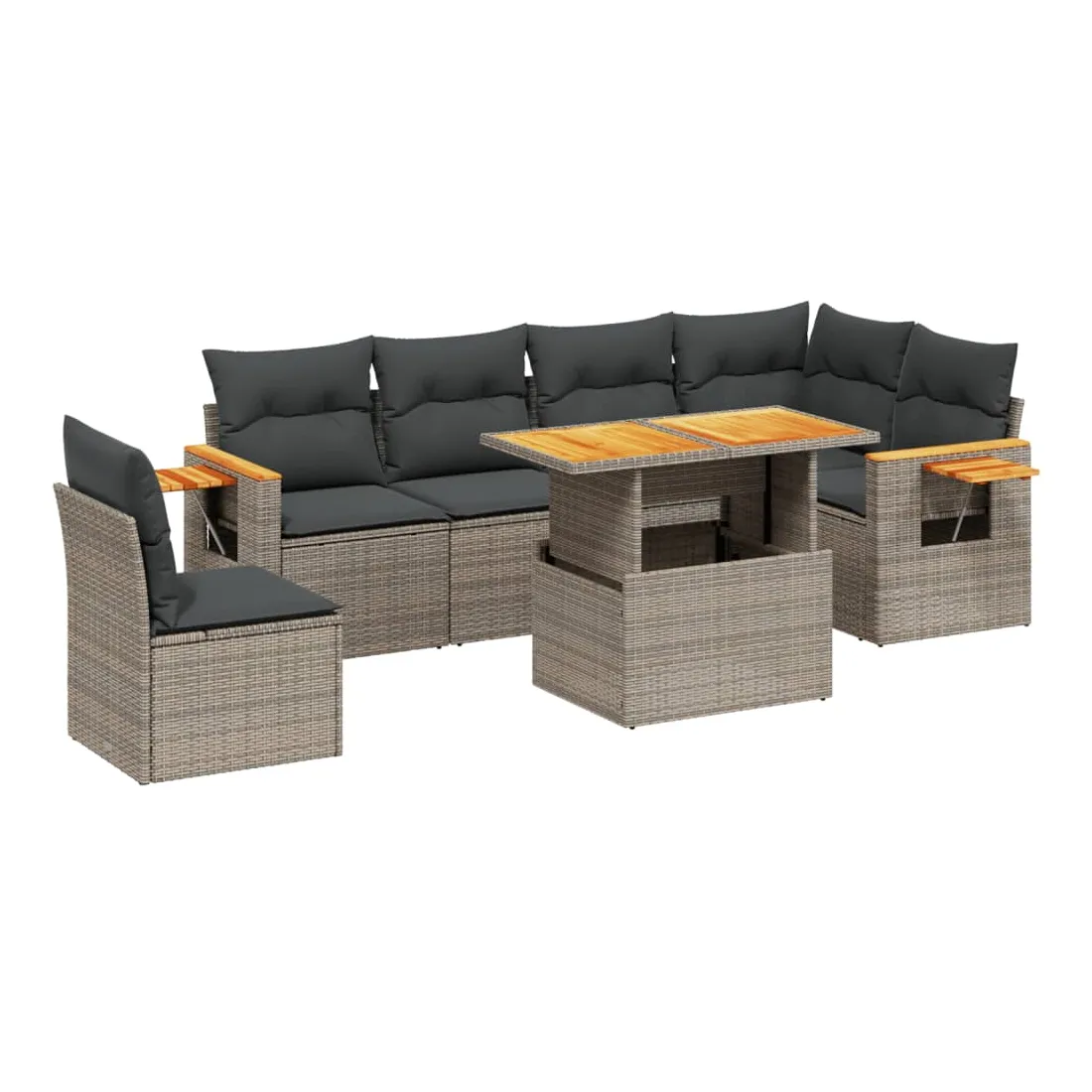 Cet ensemble de canapés de jardin est le complément parfait de votre arrière-cour, terrasse ou patio, offrant un espace confortable et accueillant pour discuter avec la famille et les amis ou simplement se détendre et profiter de l'extérieur. Matériau durable : la résine tressée, également connue sous le nom de poly rotin, est un matériau synthétique solide et nécessitant peu d'entretien qui ressemble au rotin naturel. Il est léger, facile à nettoyer et couramment utilisé pour les meubles d'extérieur en raison de sa durabilité et de ses propriétés de résistance aux intempéries.Dessus de table réglable : le dessus de table peut être soulevé pour rendre la table plus haute, ce qui transforme la table d'extérieur d'une table basse à une table de salle à manger. Elle est parfaite pour recevoir des invités ou prendre des repas à l'extérieur.Table d'appoint pratique : ce mobilier d'extérieur comprend une table d'appoint pliable avec un ressort à gaz sur les accoudoirs, offrant un endroit pratique pour garder vos essentiels à portée de main.Housse amovible et lavable : ces coussins de siège sont dotés de housses amovibles pour un lavage et un entretien faciles.Conception modulaire : cet ensemble de meubles d'extérieur a une conception modulaire, ce qui le rend complètement flexible et facile à déplacer, afin que vous puissiez créer un agencement de meubles d'extérieur personnalisé. Bon à savoir :Pour que vos meubles d'extérieur restent beaux, nous vous recommandons de les protéger avec une housse imperméable.