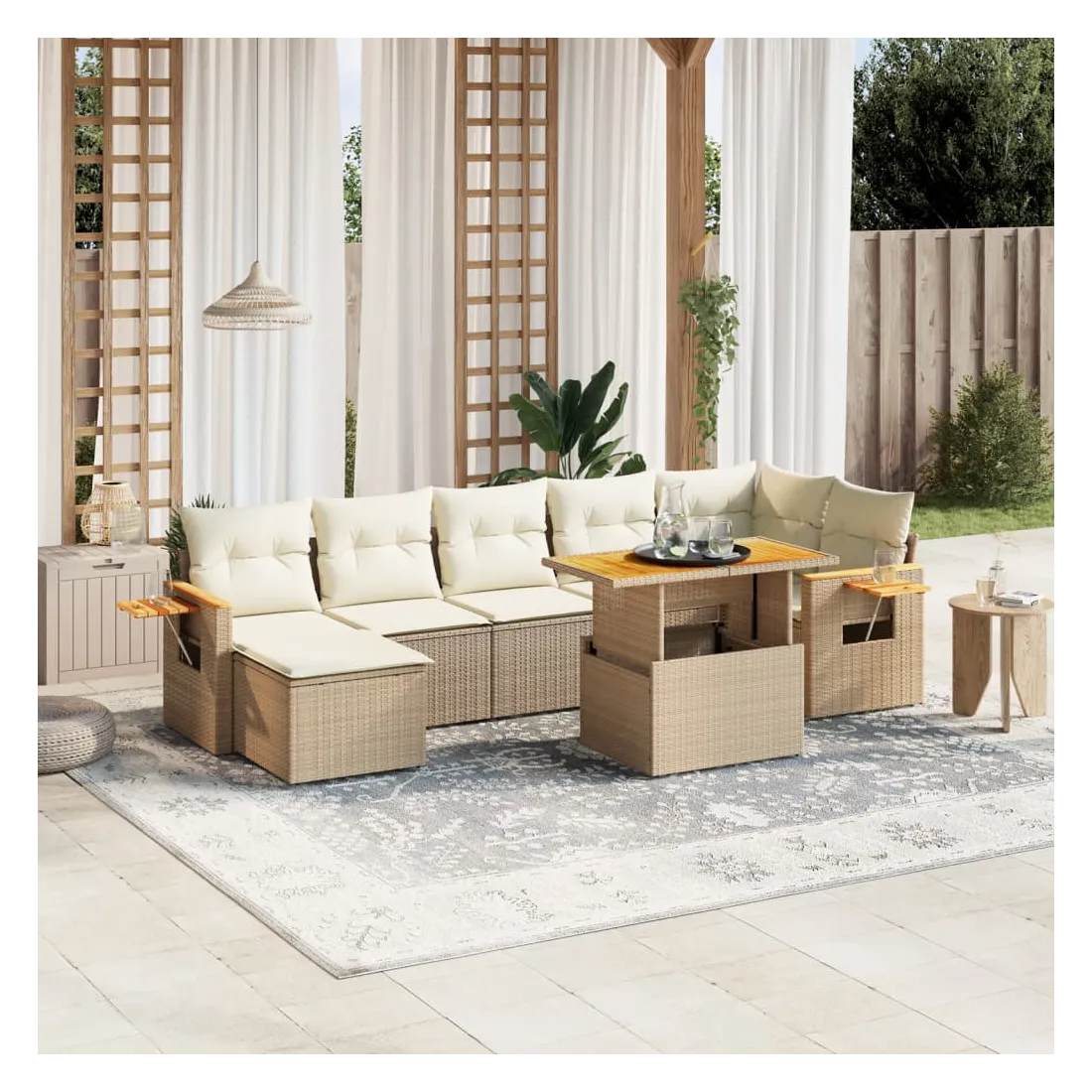 Salon de jardin avec coussins 8 pcs beige résine tressée