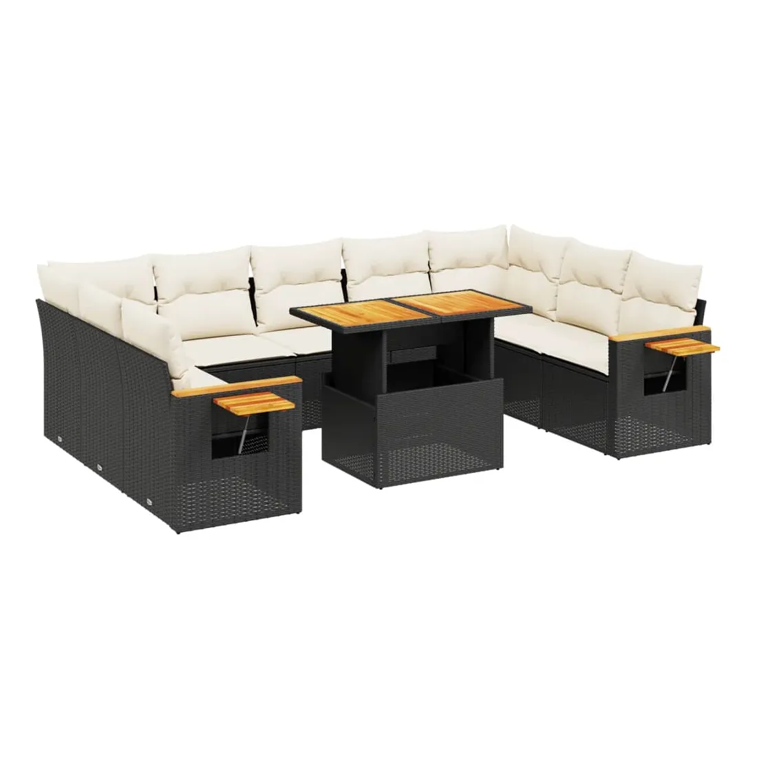 Cet ensemble de canapés de jardin est le complément parfait de votre arrière-cour, terrasse ou patio, offrant un espace confortable et accueillant pour discuter avec la famille et les amis ou simplement se détendre et profiter de l'extérieur. Matériau durable : la résine tressée, également connue sous le nom de poly rotin, est un matériau synthétique solide et nécessitant peu d'entretien qui ressemble au rotin naturel. Il est léger, facile à nettoyer et couramment utilisé pour les meubles d'extérieur en raison de sa durabilité et de ses propriétés de résistance aux intempéries.Dessus de table réglable : le dessus de table peut être soulevé pour rendre la table plus haute, ce qui transforme la table d'extérieur d'une table basse à une table de salle à manger. Elle est parfaite pour recevoir des invités ou prendre des repas à l'extérieur.Table d'appoint pratique : ce mobilier d'extérieur comprend une table d'appoint pliable avec un ressort à gaz sur les accoudoirs, offrant un endroit pratique pour garder vos essentiels à portée de main.Housse amovible et lavable : ces coussins de siège sont dotés de housses amovibles pour un lavage et un entretien faciles.Conception modulaire : cet ensemble de meubles d'extérieur a une conception modulaire, ce qui le rend complètement flexible et facile à déplacer, afin que vous puissiez créer un agencement de meubles d'extérieur personnalisé. Bon à savoir :Pour que vos meubles d'extérieur restent beaux, nous vous recommandons de les protéger avec une housse imperméable.