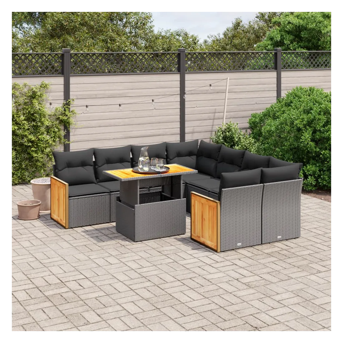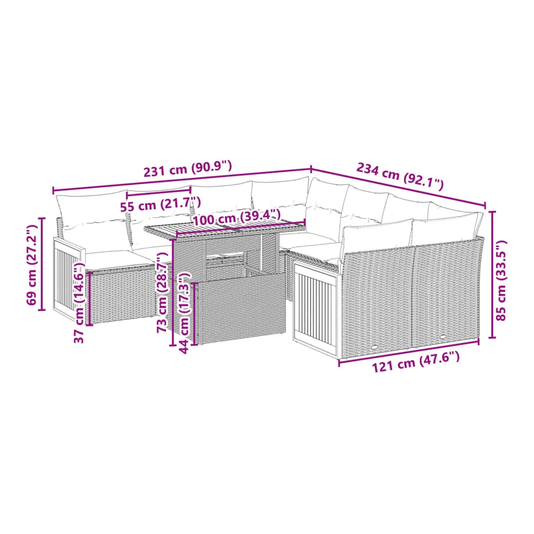 Cet ensemble de canapés de jardin est le complément parfait de votre arrière-cour, terrasse ou patio, offrant un espace confortable et accueillant pour discuter avec la famille et les amis ou simplement se détendre et profiter de l'extérieur. Matériau durable : la résine tressée, également connue sous le nom de poly rotin, est un matériau synthétique solide et nécessitant peu d'entretien qui ressemble au rotin naturel. Il est léger, facile à nettoyer et couramment utilisé pour les meubles d'extérieur en raison de sa durabilité et de ses propriétés de résistance aux intempéries.Dessus de table réglable : le dessus de table peut être soulevé pour rendre la table plus haute, ce qui transforme la table d'extérieur d'une table basse à une table de salle à manger. Elle est parfaite pour recevoir des invités ou prendre des repas à l'extérieur.Housse amovible et lavable : ces coussins de siège sont dotés de housses amovibles pour un lavage et un entretien faciles.Conception modulaire : cet ensemble de meubles d'extérieur a une conception modulaire, ce qui le rend complètement flexible et facile à déplacer, afin que vous puissiez créer un agencement de meubles d'extérieur personnalisé. Bon à savoir :Pour que vos meubles d'extérieur restent beaux, nous vous recommandons de les protéger avec une housse imperméable.