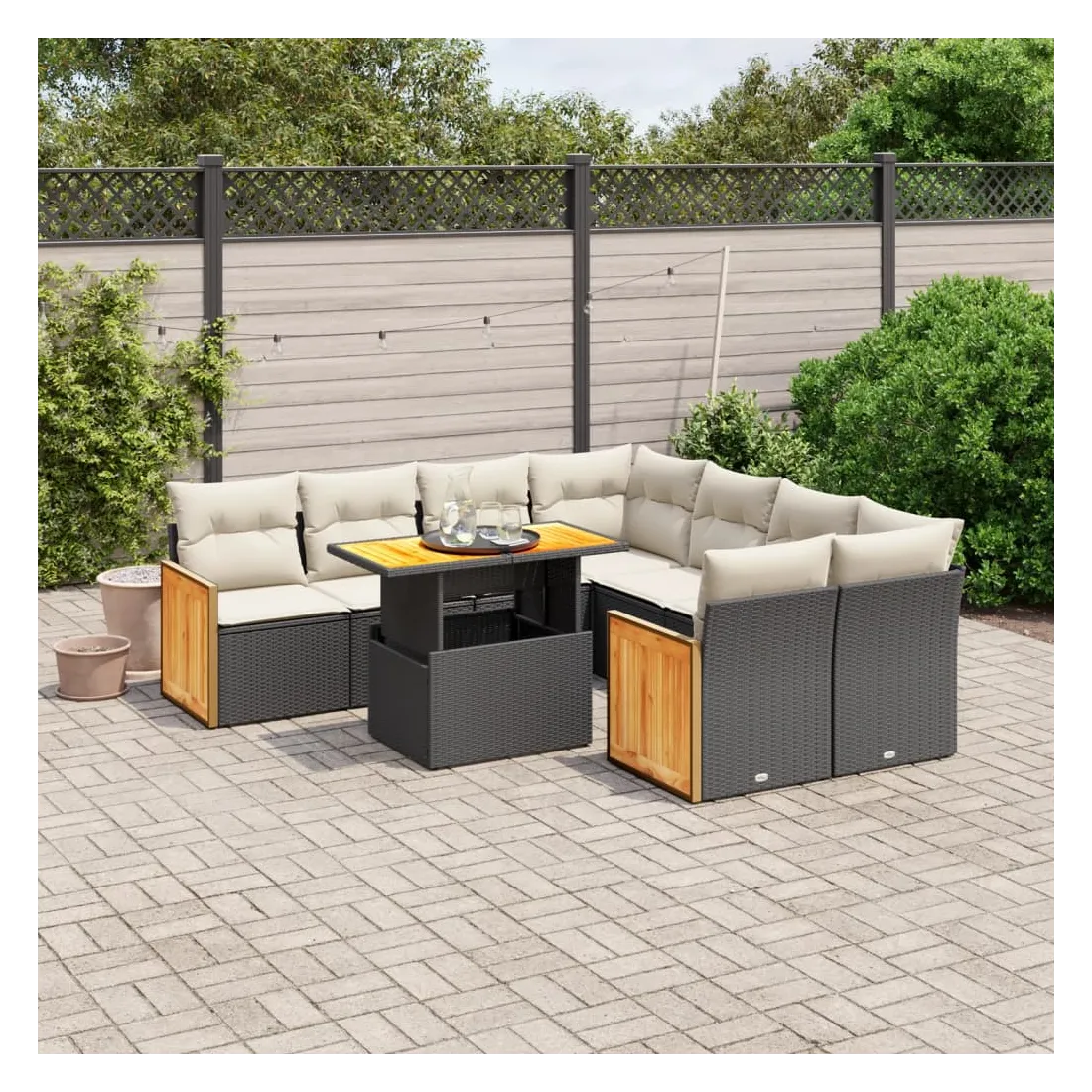 Cet ensemble de canapés de jardin est le complément parfait de votre arrière-cour, terrasse ou patio, offrant un espace confortable et accueillant pour discuter avec la famille et les amis ou simplement se détendre et profiter de l'extérieur. Matériau durable : la résine tressée, également connue sous le nom de poly rotin, est un matériau synthétique solide et nécessitant peu d'entretien qui ressemble au rotin naturel. Il est léger, facile à nettoyer et couramment utilisé pour les meubles d'extérieur en raison de sa durabilité et de ses propriétés de résistance aux intempéries.Dessus de table réglable : le dessus de table peut être soulevé pour rendre la table plus haute, ce qui transforme la table d'extérieur d'une table basse à une table de salle à manger. Elle est parfaite pour recevoir des invités ou prendre des repas à l'extérieur.Housse amovible et lavable : ces coussins de siège sont dotés de housses amovibles pour un lavage et un entretien faciles.Conception modulaire : cet ensemble de meubles d'extérieur a une conception modulaire, ce qui le rend complètement flexible et facile à déplacer, afin que vous puissiez créer un agencement de meubles d'extérieur personnalisé. Bon à savoir :Pour que vos meubles d'extérieur restent beaux, nous vous recommandons de les protéger avec une housse imperméable.