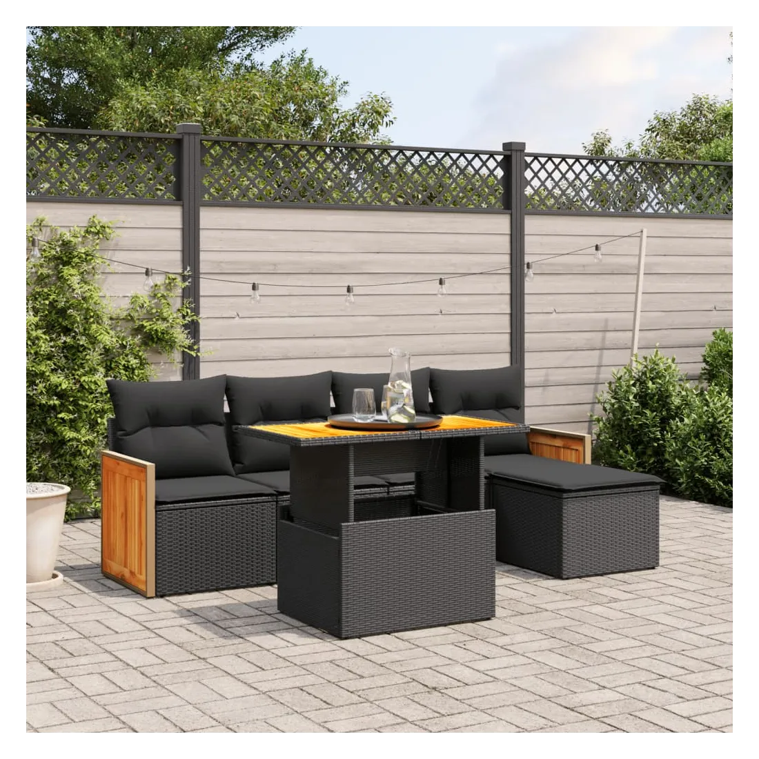 - Matériau : résine tressée, acier enduit de poudre, bois d'acacia massif avec finition à l'huile