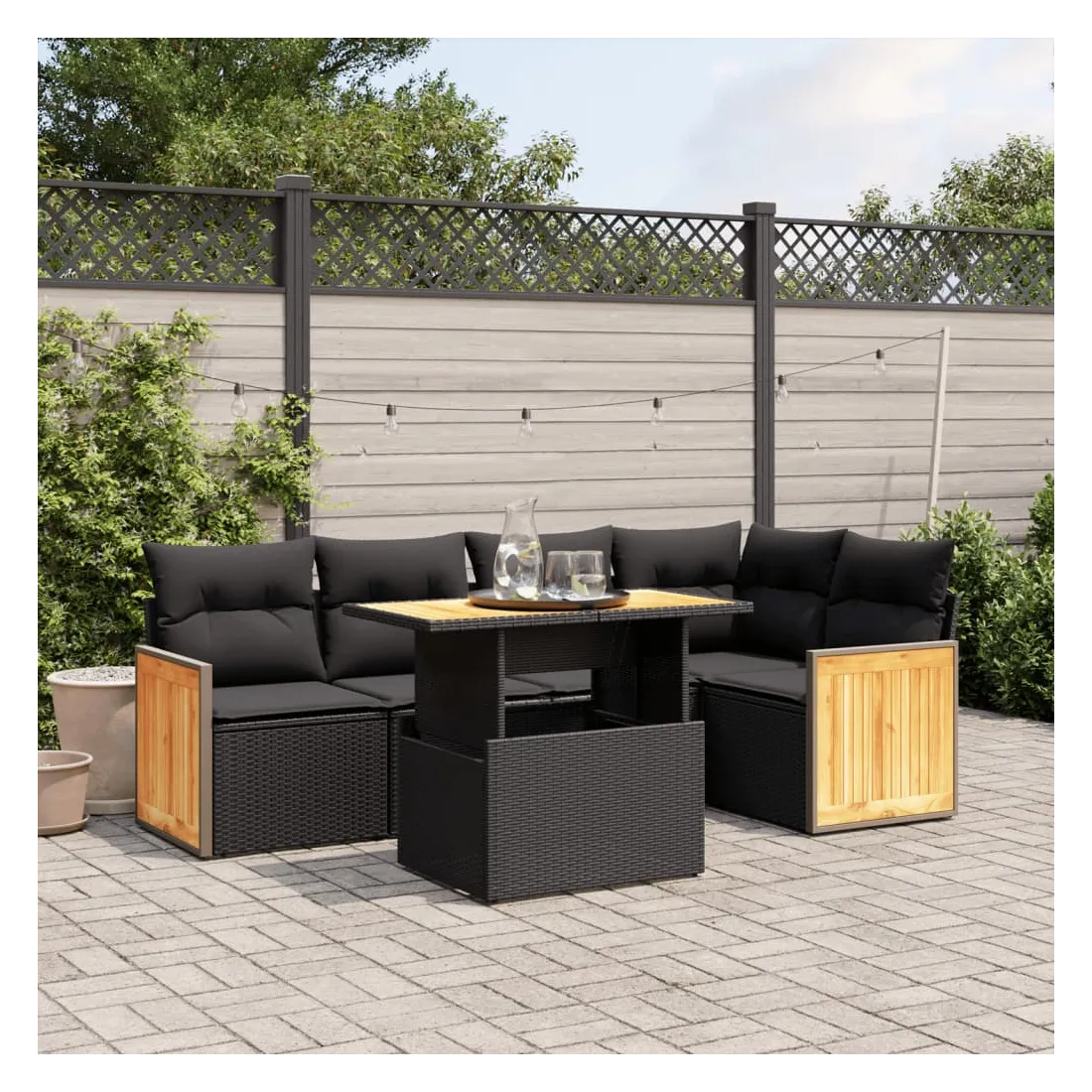 Salon de jardin 6 pcs avec coussins noir résine tressée
