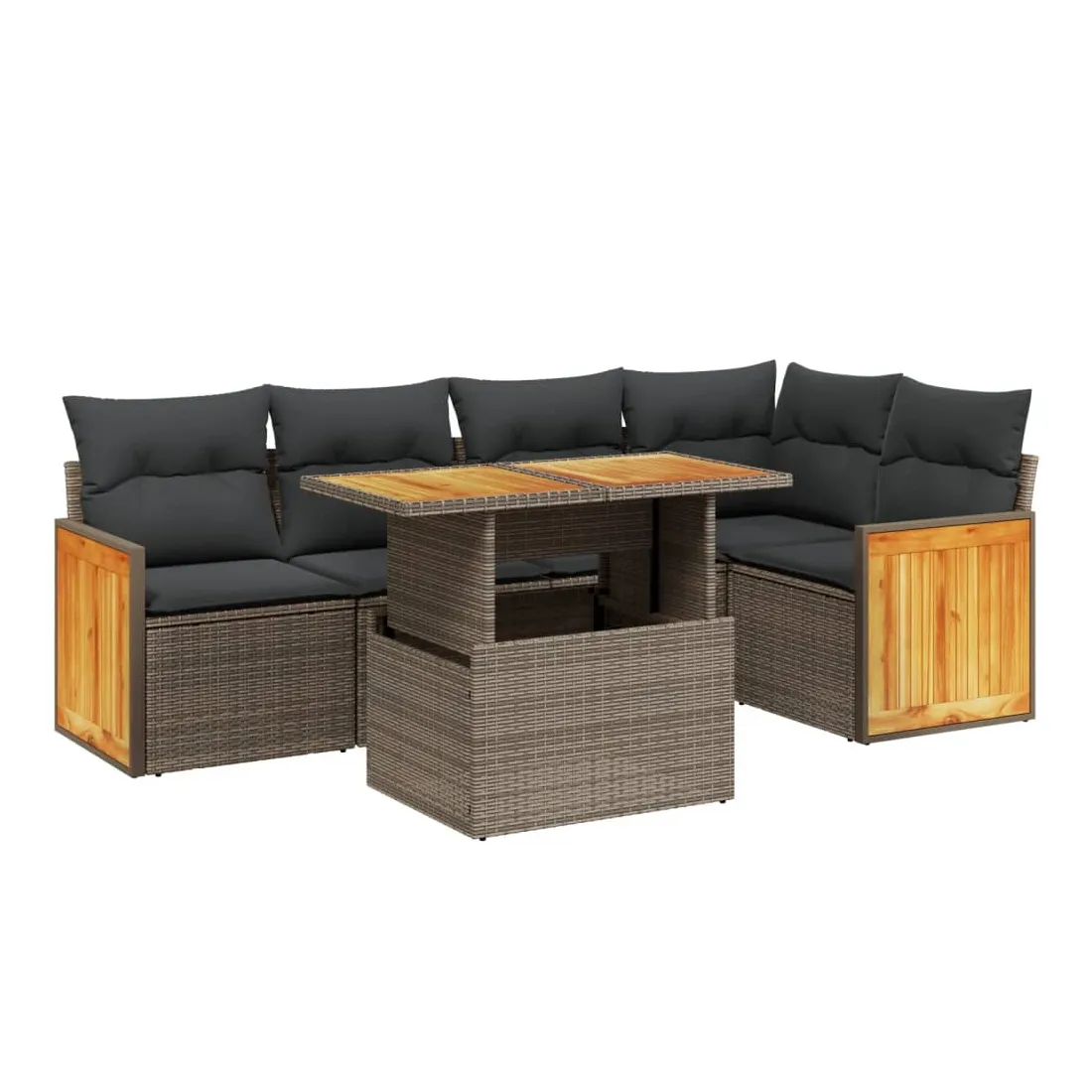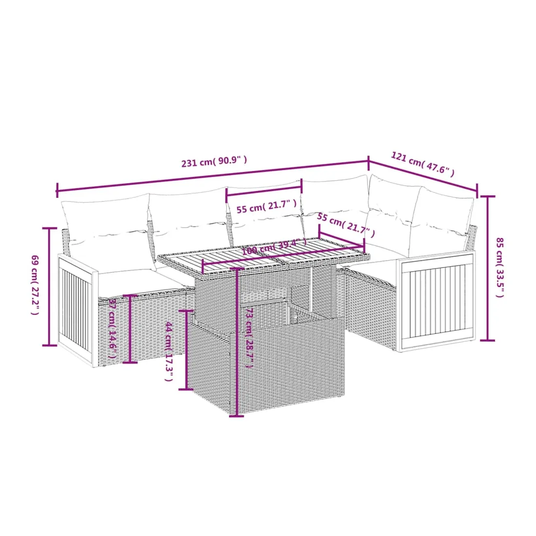 Salon de jardin avec coussins 6 pcs beige résine tressée