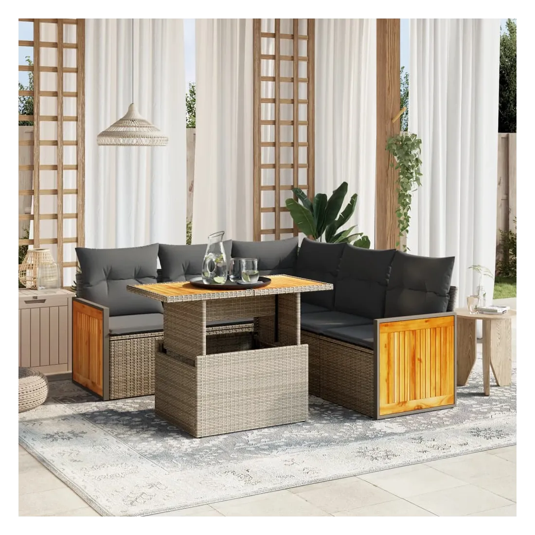 - Matériau : résine tressée, acier enduit de poudre, bois d'acacia massif avec finition à l'huile