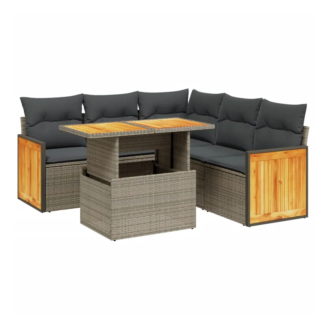 Cet ensemble de canapés de jardin est le complément parfait de votre arrière-cour, terrasse ou patio, offrant un espace confortable et accueillant pour discuter avec la famille et les amis ou simplement se détendre et profiter de l'extérieur. Matériau durable : la résine tressée, également connue sous le nom de poly rotin, est un matériau synthétique solide et nécessitant peu d'entretien qui ressemble au rotin naturel. Il est léger, facile à nettoyer et couramment utilisé pour les meubles d'extérieur en raison de sa durabilité et de ses propriétés de résistance aux intempéries.Dessus de table réglable : le dessus de table peut être soulevé pour rendre la table plus haute, ce qui transforme la table d'extérieur d'une table basse à une table de salle à manger. Elle est parfaite pour recevoir des invités ou prendre des repas à l'extérieur.Housse amovible et lavable : ces coussins de siège sont dotés de housses amovibles pour un lavage et un entretien faciles.Conception modulaire : cet ensemble de meubles d'extérieur a une conception modulaire, ce qui le rend complètement flexible et facile à déplacer, afin que vous puissiez créer un agencement de meubles d'extérieur personnalisé. Bon à savoir :Pour que vos meubles d'extérieur restent beaux, nous vous recommandons de les protéger avec une housse imperméable.