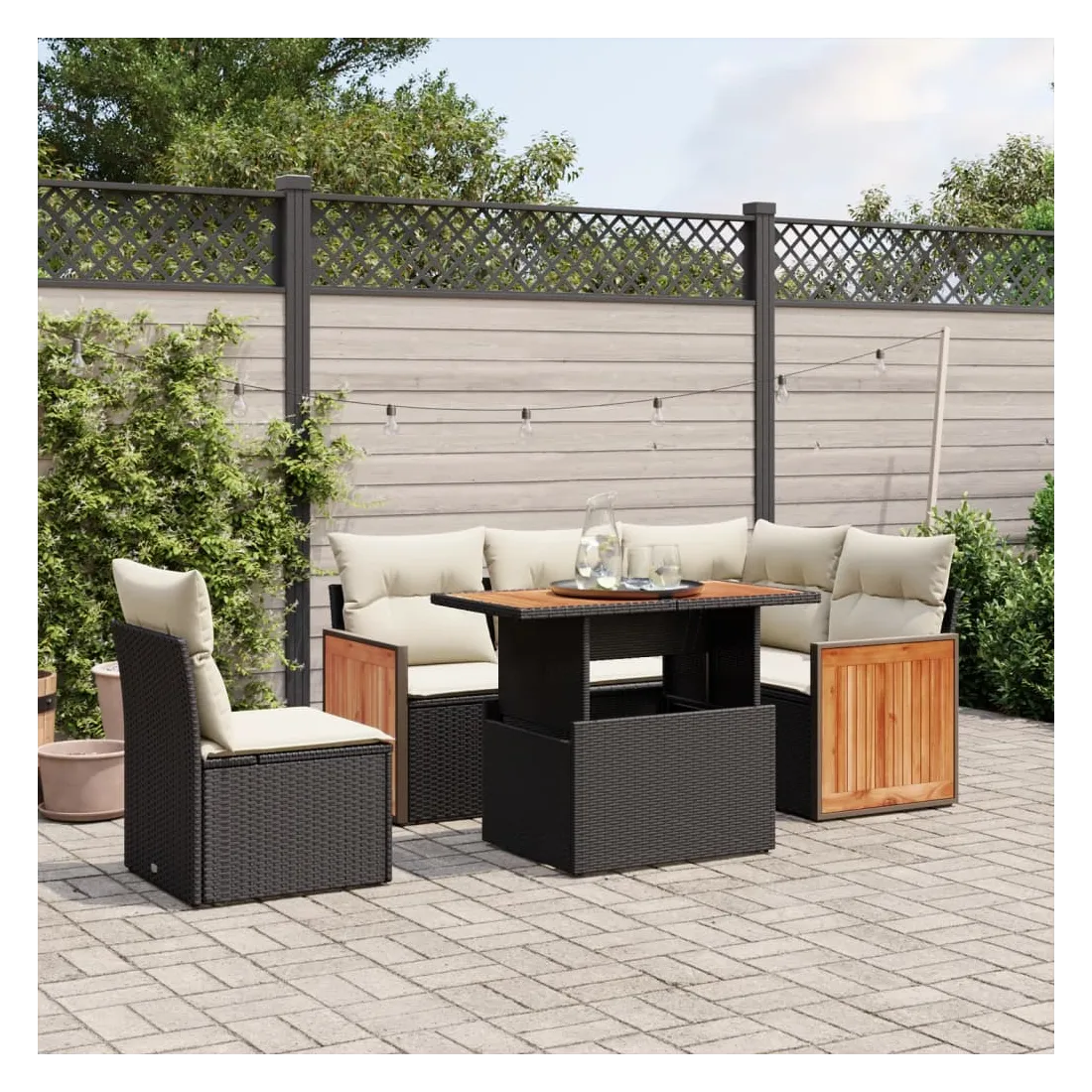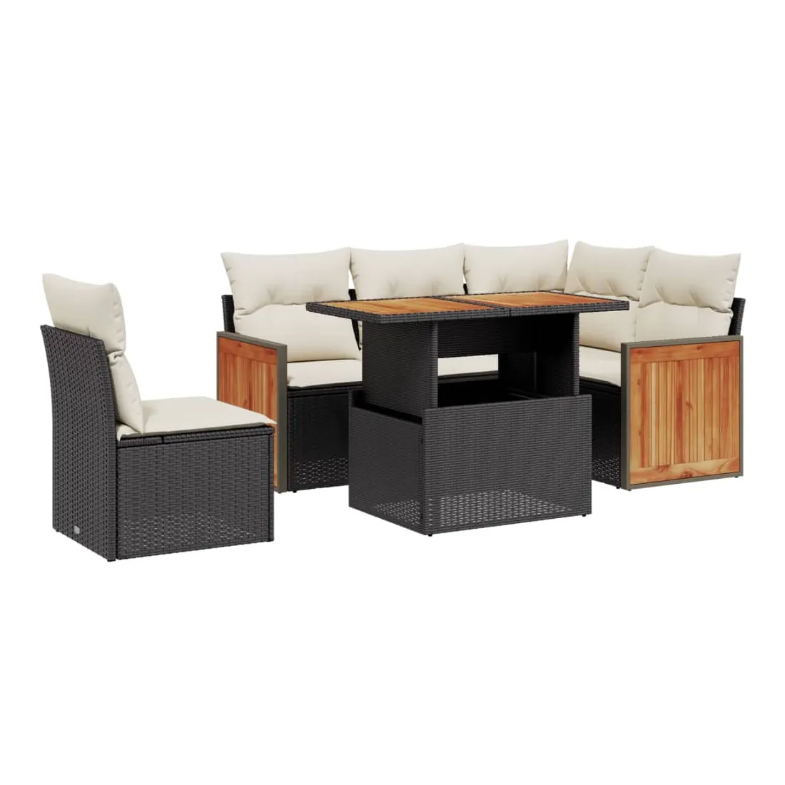Salon de jardin 6 pcs avec coussins noir résine tressée
