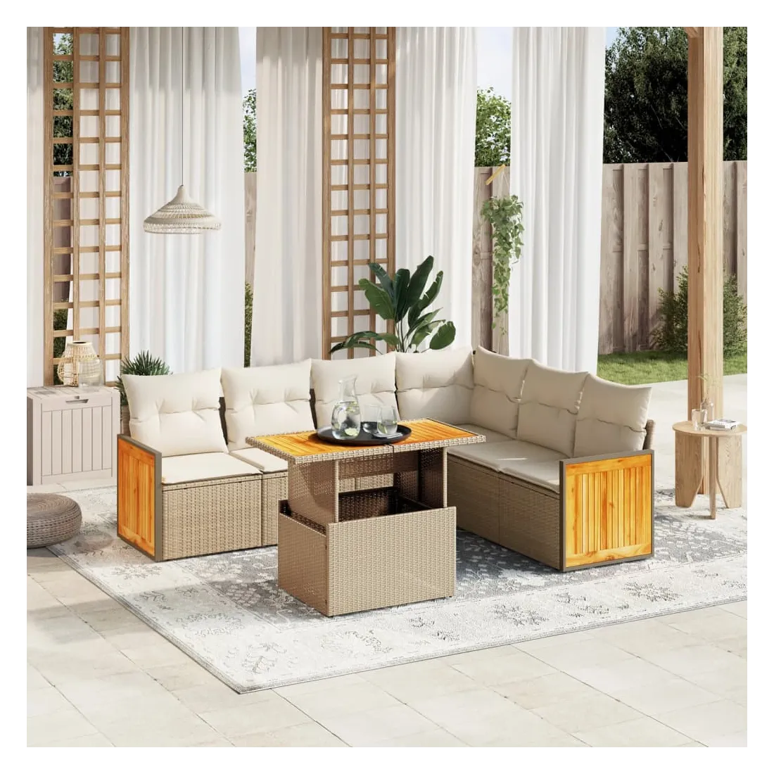 - Matériau : résine tressée, acier enduit de poudre, bois d'acacia massif avec finition à l'huile