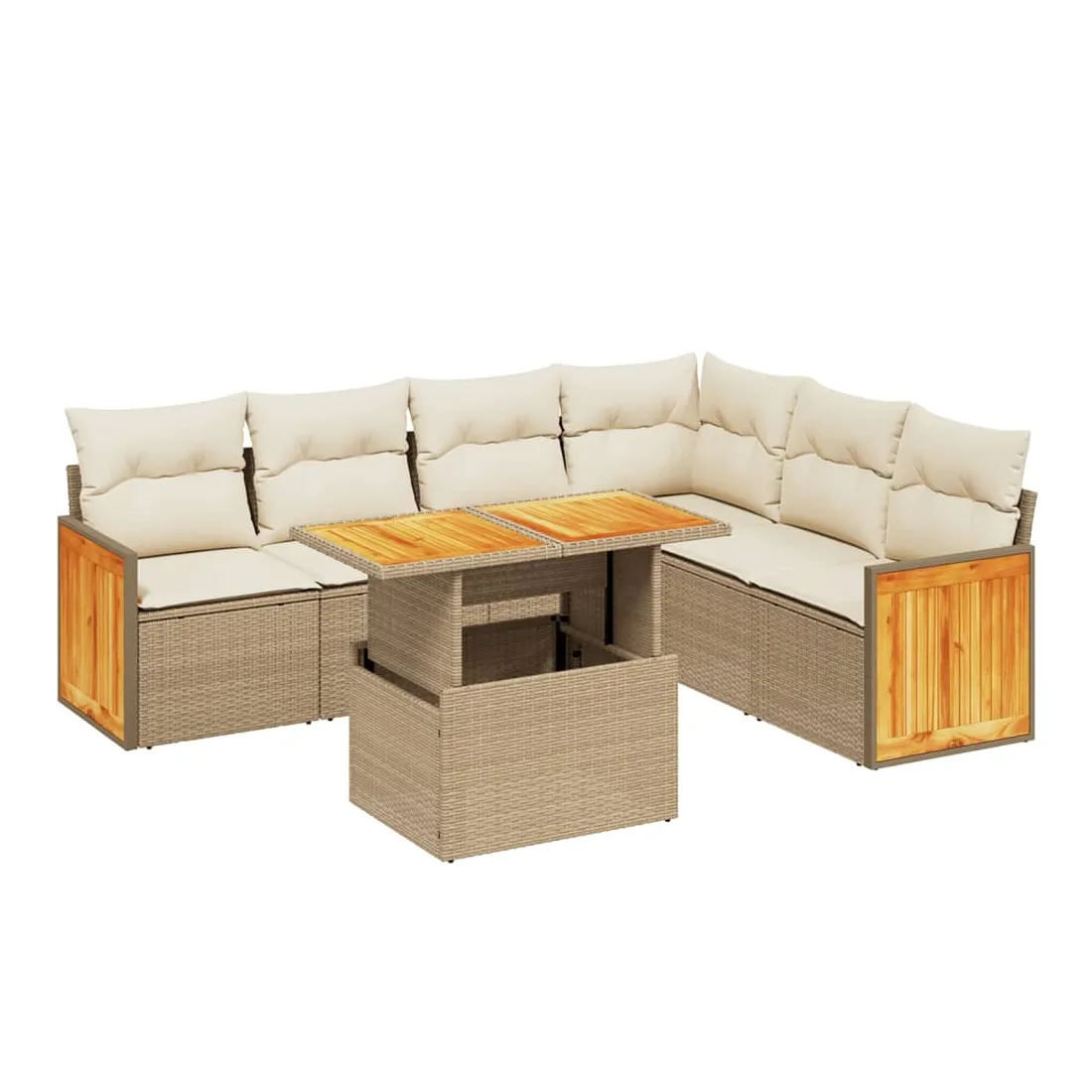 Cet ensemble de canapés de jardin est le complément parfait de votre arrière-cour, terrasse ou patio, offrant un espace confortable et accueillant pour discuter avec la famille et les amis ou simplement se détendre et profiter de l'extérieur. Matériau durable : la résine tressée, également connue sous le nom de poly rotin, est un matériau synthétique solide et nécessitant peu d'entretien qui ressemble au rotin naturel. Il est léger, facile à nettoyer et couramment utilisé pour les meubles d'extérieur en raison de sa durabilité et de ses propriétés de résistance aux intempéries.Dessus de table réglable : le dessus de table peut être soulevé pour rendre la table plus haute, ce qui transforme la table d'extérieur d'une table basse à une table de salle à manger. Elle est parfaite pour recevoir des invités ou prendre des repas à l'extérieur.Housse amovible et lavable : ces coussins de siège sont dotés de housses amovibles pour un lavage et un entretien faciles.Conception modulaire : cet ensemble de meubles d'extérieur a une conception modulaire, ce qui le rend complètement flexible et facile à déplacer, afin que vous puissiez créer un agencement de meubles d'extérieur personnalisé. Bon à savoir :Pour que vos meubles d'extérieur restent beaux, nous vous recommandons de les protéger avec une housse imperméable.