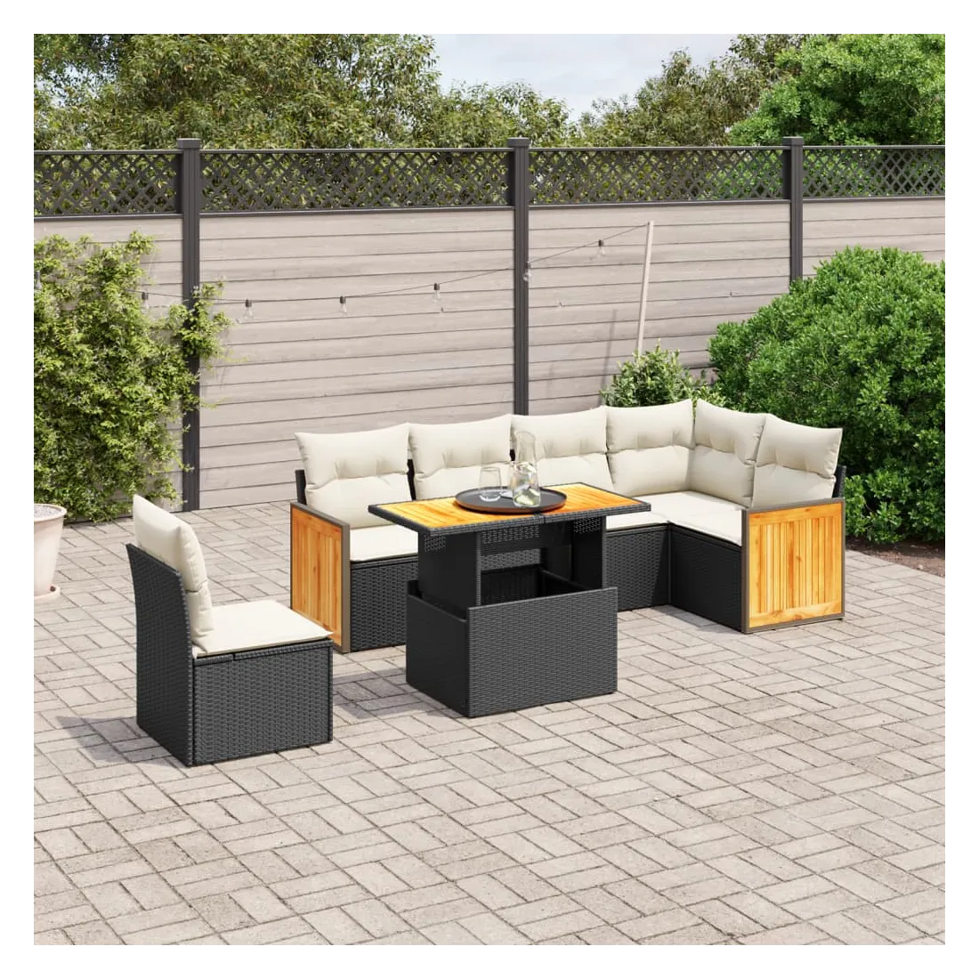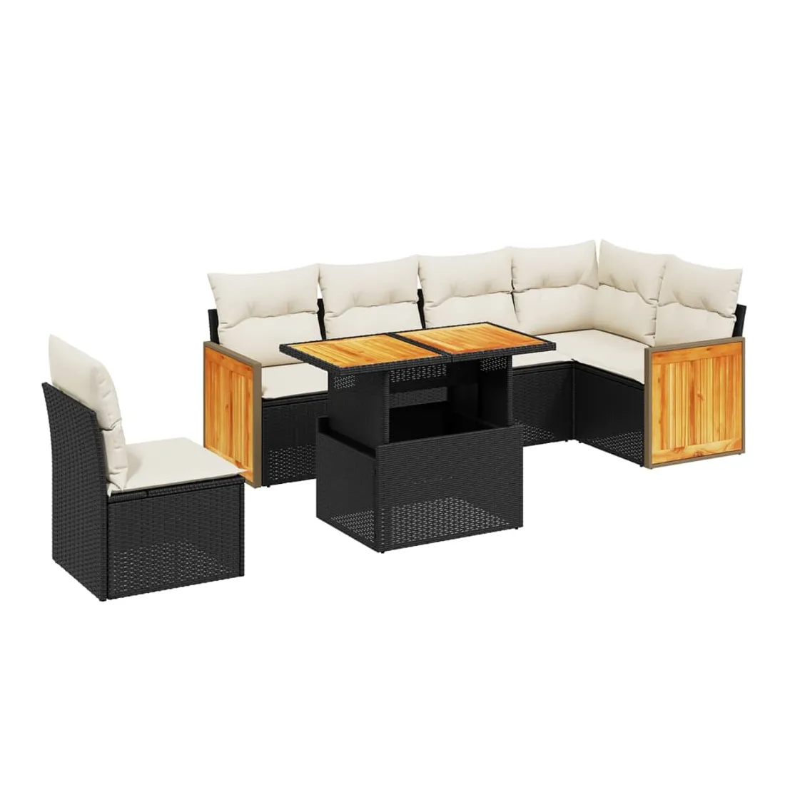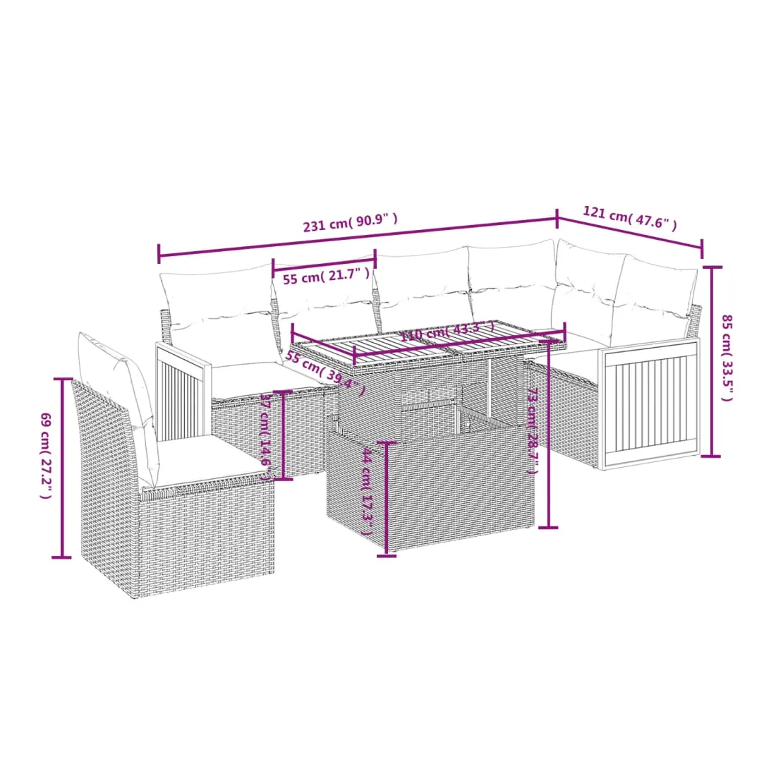 Cet ensemble de canapés de jardin est le complément parfait de votre arrière-cour, terrasse ou patio, offrant un espace confortable et accueillant pour discuter avec la famille et les amis ou simplement se détendre et profiter de l'extérieur. Matériau durable : la résine tressée, également connue sous le nom de poly rotin, est un matériau synthétique solide et nécessitant peu d'entretien qui ressemble au rotin naturel. Il est léger, facile à nettoyer et couramment utilisé pour les meubles d'extérieur en raison de sa durabilité et de ses propriétés de résistance aux intempéries.Dessus de table réglable : le dessus de table peut être soulevé pour rendre la table plus haute, ce qui transforme la table d'extérieur d'une table basse à une table de salle à manger. Elle est parfaite pour recevoir des invités ou prendre des repas à l'extérieur.Housse amovible et lavable : ces coussins de siège sont dotés de housses amovibles pour un lavage et un entretien faciles.Conception modulaire : cet ensemble de meubles d'extérieur a une conception modulaire, ce qui le rend complètement flexible et facile à déplacer, afin que vous puissiez créer un agencement de meubles d'extérieur personnalisé. Bon à savoir :Pour que vos meubles d'extérieur restent beaux, nous vous recommandons de les protéger avec une housse imperméable.