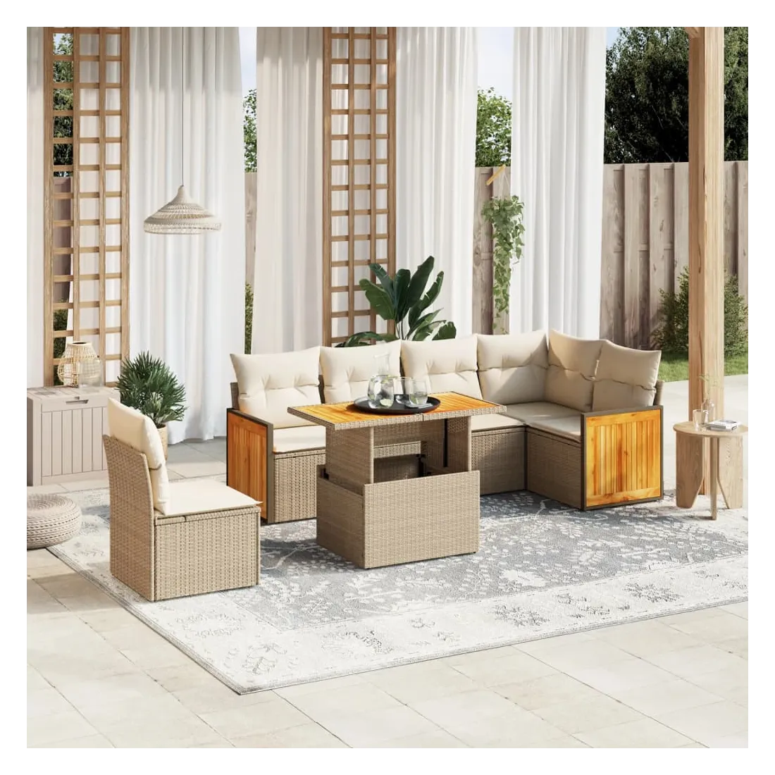 - Matériau : résine tressée, acier enduit de poudre, bois d'acacia massif avec finition à l'huile