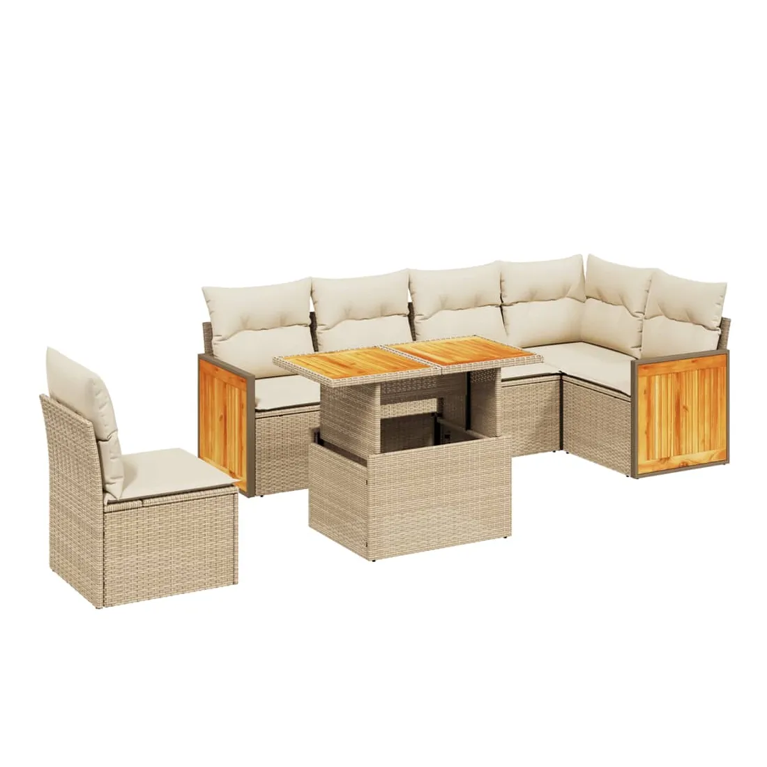 Cet ensemble de canapés de jardin est le complément parfait de votre arrière-cour, terrasse ou patio, offrant un espace confortable et accueillant pour discuter avec la famille et les amis ou simplement se détendre et profiter de l'extérieur. Matériau durable : la résine tressée, également connue sous le nom de poly rotin, est un matériau synthétique solide et nécessitant peu d'entretien qui ressemble au rotin naturel. Il est léger, facile à nettoyer et couramment utilisé pour les meubles d'extérieur en raison de sa durabilité et de ses propriétés de résistance aux intempéries.Dessus de table réglable : le dessus de table peut être soulevé pour rendre la table plus haute, ce qui transforme la table d'extérieur d'une table basse à une table de salle à manger. Elle est parfaite pour recevoir des invités ou prendre des repas à l'extérieur.Housse amovible et lavable : ces coussins de siège sont dotés de housses amovibles pour un lavage et un entretien faciles.Conception modulaire : cet ensemble de meubles d'extérieur a une conception modulaire, ce qui le rend complètement flexible et facile à déplacer, afin que vous puissiez créer un agencement de meubles d'extérieur personnalisé. Bon à savoir :Pour que vos meubles d'extérieur restent beaux, nous vous recommandons de les protéger avec une housse imperméable.