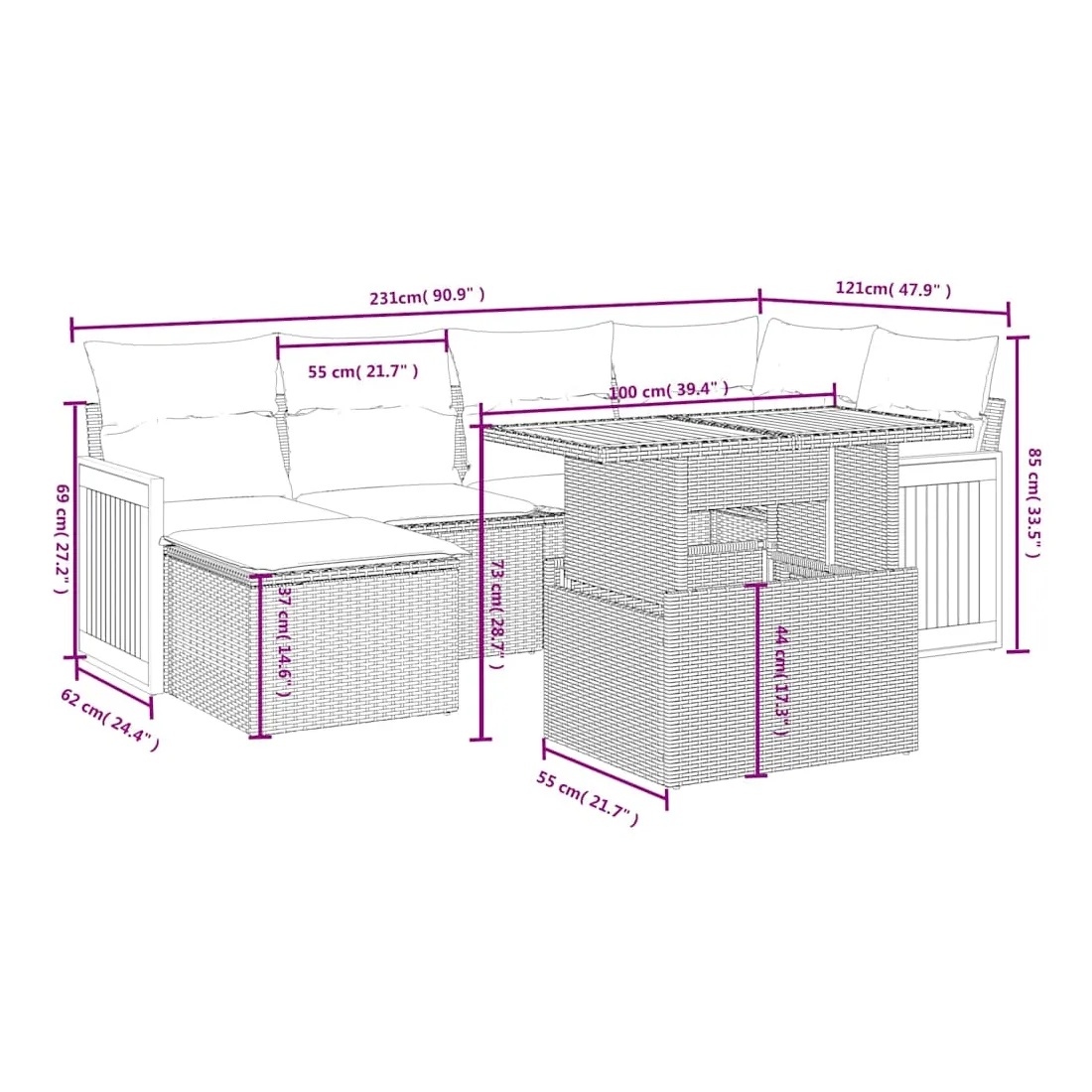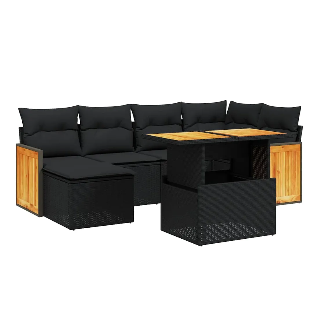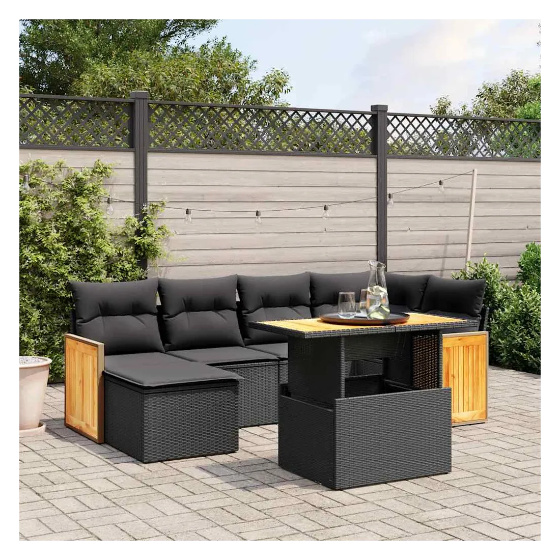 Cet ensemble de canapés de jardin est le complément parfait de votre arrière-cour, terrasse ou patio, offrant un espace confortable et accueillant pour discuter avec la famille et les amis ou simplement se détendre et profiter de l'extérieur. Matériau durable : la résine tressée, également connue sous le nom de poly rotin, est un matériau synthétique solide et nécessitant peu d'entretien qui ressemble au rotin naturel. Il est léger, facile à nettoyer et couramment utilisé pour les meubles d'extérieur en raison de sa durabilité et de ses propriétés de résistance aux intempéries.Dessus de table réglable : le dessus de table peut être soulevé pour rendre la table plus haute, ce qui transforme la table d'extérieur d'une table basse à une table de salle à manger. Elle est parfaite pour recevoir des invités ou prendre des repas à l'extérieur.Housse amovible et lavable : ces coussins de siège sont dotés de housses amovibles pour un lavage et un entretien faciles.Conception modulaire : cet ensemble de meubles d'extérieur a une conception modulaire, ce qui le rend complètement flexible et facile à déplacer, afin que vous puissiez créer un agencement de meubles d'extérieur personnalisé. Bon à savoir :Pour que vos meubles d'extérieur restent beaux, nous vous recommandons de les protéger avec une housse imperméable.
