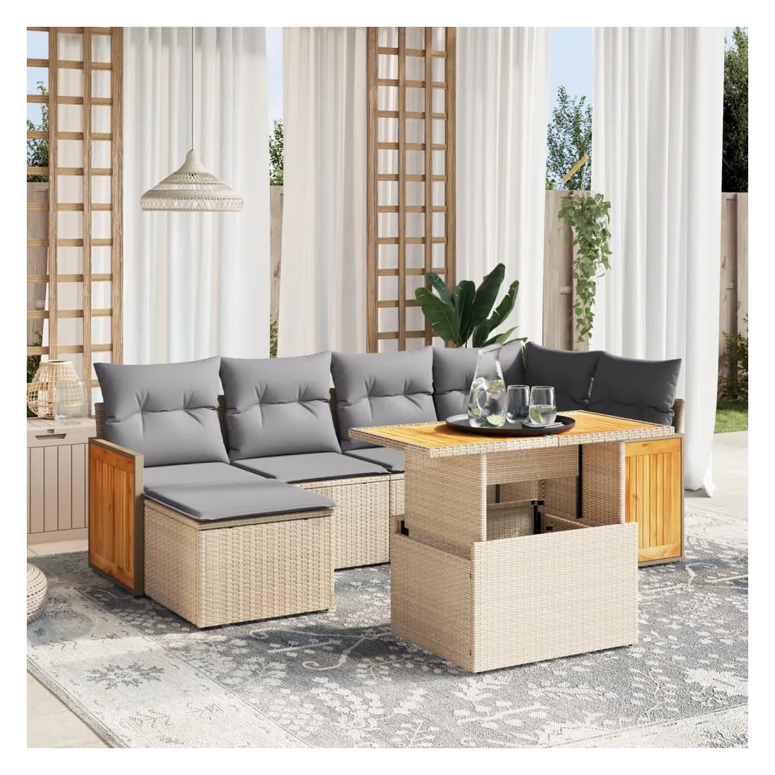 Cet ensemble de canapés de jardin est le complément parfait de votre arrière-cour, terrasse ou patio, offrant un espace confortable et accueillant pour discuter avec la famille et les amis ou simplement se détendre et profiter de l'extérieur. Matériau durable : la résine tressée, également connue sous le nom de poly rotin, est un matériau synthétique solide et nécessitant peu d'entretien qui ressemble au rotin naturel. Il est léger, facile à nettoyer et couramment utilisé pour les meubles d'extérieur en raison de sa durabilité et de ses propriétés de résistance aux intempéries.Dessus de table réglable : le dessus de table peut être soulevé pour rendre la table plus haute, ce qui transforme la table d'extérieur d'une table basse à une table de salle à manger. Elle est parfaite pour recevoir des invités ou prendre des repas à l'extérieur.Housse amovible et lavable : ces coussins de siège sont dotés de housses amovibles pour un lavage et un entretien faciles.Conception modulaire : cet ensemble de meubles d'extérieur a une conception modulaire, ce qui le rend complètement flexible et facile à déplacer, afin que vous puissiez créer un agencement de meubles d'extérieur personnalisé. Bon à savoir :Pour que vos meubles d'extérieur restent beaux, nous vous recommandons de les protéger avec une housse imperméable.