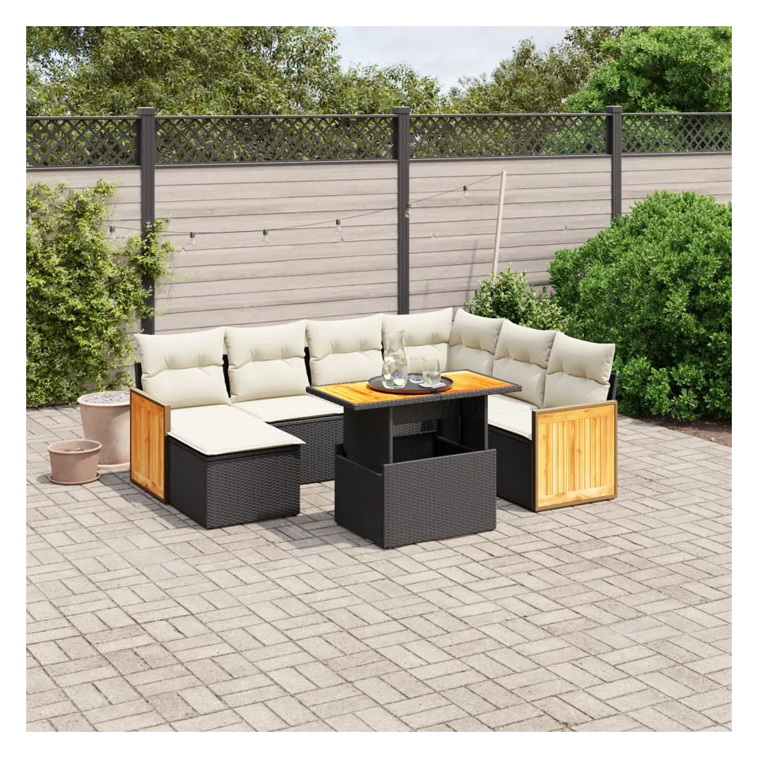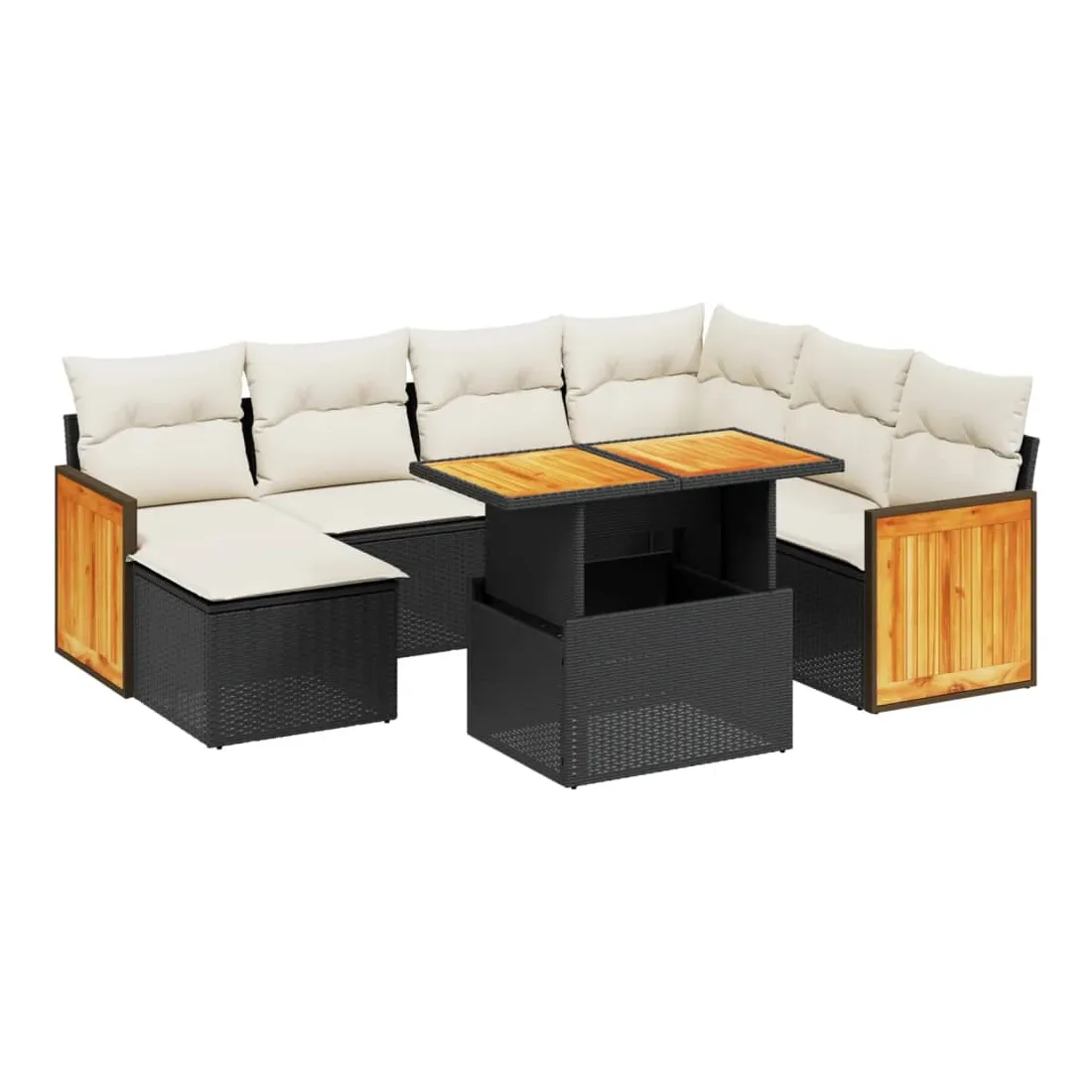 Cet ensemble de canapés de jardin est le complément parfait de votre arrière-cour, terrasse ou patio, offrant un espace confortable et accueillant pour discuter avec la famille et les amis ou simplement se détendre et profiter de l'extérieur. Matériau durable : la résine tressée, également connue sous le nom de poly rotin, est un matériau synthétique solide et nécessitant peu d'entretien qui ressemble au rotin naturel. Il est léger, facile à nettoyer et couramment utilisé pour les meubles d'extérieur en raison de sa durabilité et de ses propriétés de résistance aux intempéries.Dessus de table réglable : le dessus de table peut être soulevé pour rendre la table plus haute, ce qui transforme la table d'extérieur d'une table basse à une table de salle à manger. Elle est parfaite pour recevoir des invités ou prendre des repas à l'extérieur.Housse amovible et lavable : ces coussins de siège sont dotés de housses amovibles pour un lavage et un entretien faciles.Conception modulaire : cet ensemble de meubles d'extérieur a une conception modulaire, ce qui le rend complètement flexible et facile à déplacer, afin que vous puissiez créer un agencement de meubles d'extérieur personnalisé. Bon à savoir :Pour que vos meubles d'extérieur restent beaux, nous vous recommandons de les protéger avec une housse imperméable.