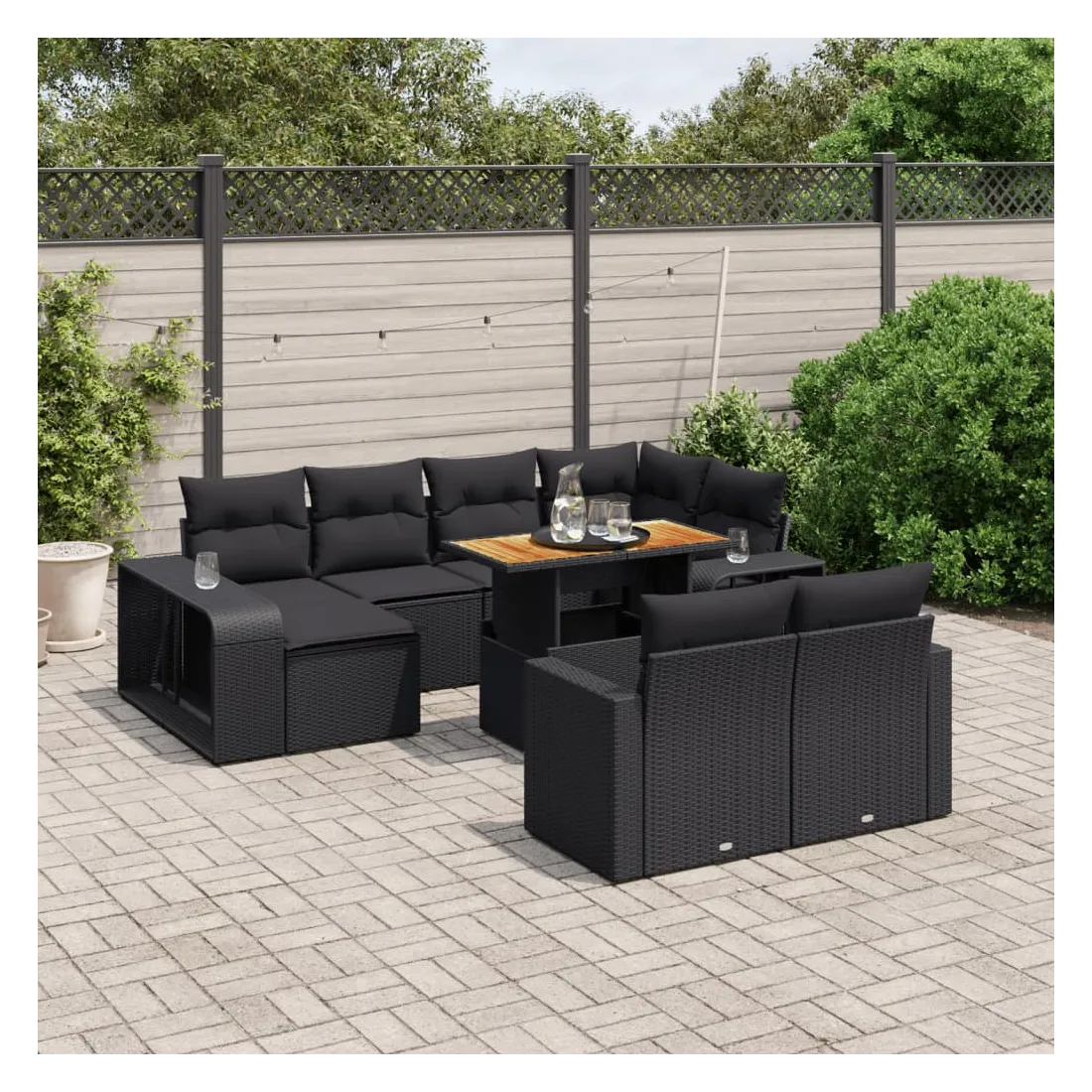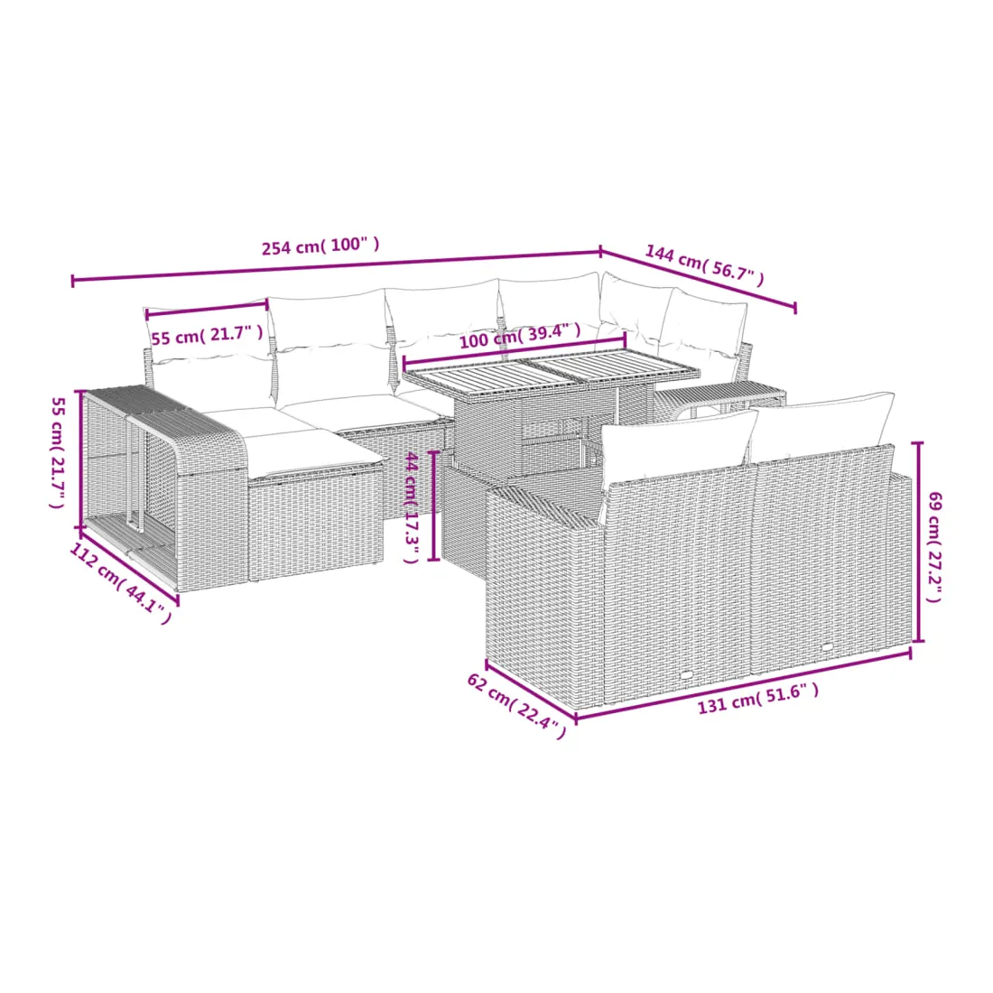 Cet ensemble de canapés de jardin est le complément parfait de votre arrière-cour, terrasse ou patio, offrant un espace confortable et accueillant pour discuter avec la famille et les amis ou simplement se détendre et profiter de l'extérieur. Matériau durable : la résine tressée, également connue sous le nom de poly rotin, est un matériau synthétique solide et nécessitant peu d'entretien qui ressemble au rotin naturel. Il est léger, facile à nettoyer et couramment utilisé pour les meubles d'extérieur en raison de sa durabilité et de ses propriétés de résistance aux intempéries.Dessus de table réglable : le dessus de table peut être soulevé pour rendre la table plus haute, ce qui transforme la table d'extérieur d'une table basse à une table de salle à manger. Elle est parfaite pour recevoir des invités ou prendre des repas à l'extérieur.Grand espace de rangement : avec un espace de rangement intégré, ce meuble d'extérieur offre un grand espace de rangement pour garder vos objets essentiels organisés et facilement accessibles.Housse amovible et lavable : ces coussins de siège sont dotés de housses amovibles pour un lavage et un entretien faciles.Conception modulaire : cet ensemble de meubles d'extérieur a une conception modulaire, ce qui le rend complètement flexible et facile à déplacer, afin que vous puissiez créer un agencement de meubles d'extérieur personnalisé. Bon à savoir :Pour que vos meubles d'extérieur restent beaux, nous vous recommandons de les protéger avec une housse imperméable.