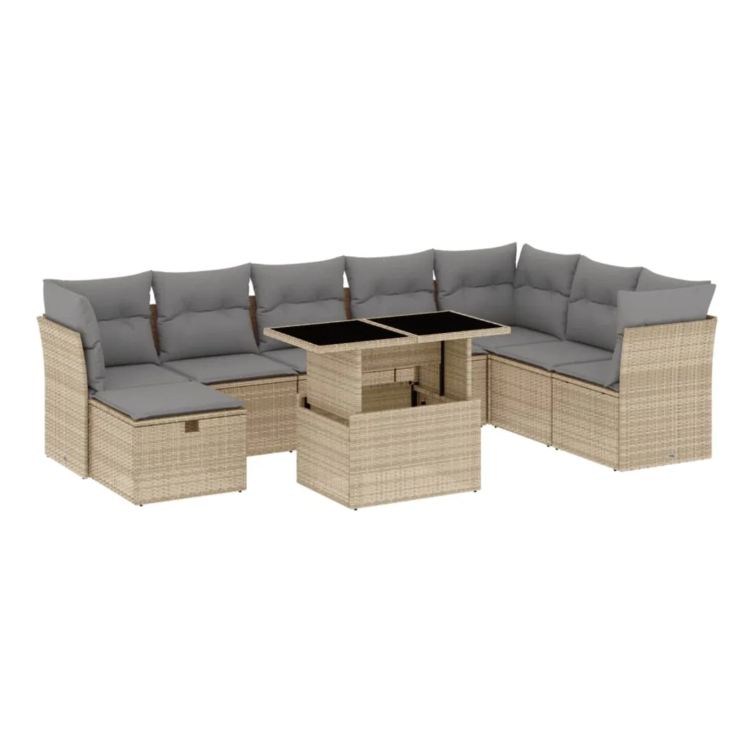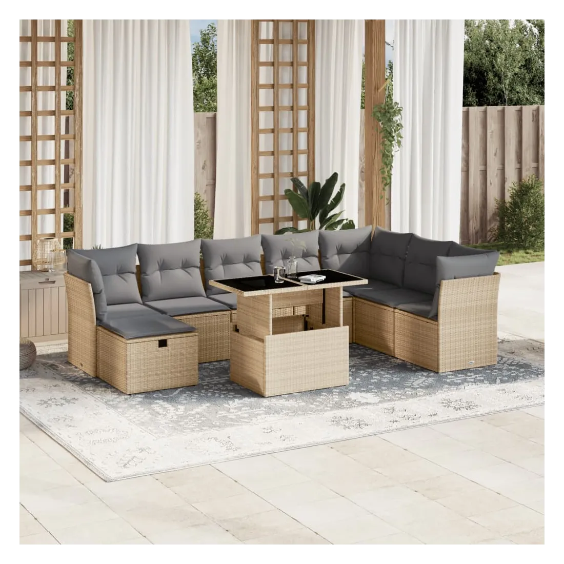 Cet ensemble de canapés de jardin est le complément parfait de votre arrière-cour, terrasse ou patio, offrant un espace confortable et accueillant pour discuter avec la famille et les amis ou simplement se détendre et profiter de l'extérieur. Matériau durable : la résine tressée, également connue sous le nom de poly rotin, est un matériau synthétique solide et nécessitant peu d'entretien qui ressemble au rotin naturel. Il est léger, facile à nettoyer et couramment utilisé pour les meubles d'extérieur en raison de sa durabilité et de ses propriétés de résistance aux intempéries.Dessus de table réglable : le dessus de table peut être soulevé pour rendre la table plus haute, ce qui transforme la table d'extérieur d'une table basse à une table de salle à manger. Elle est parfaite pour recevoir des invités ou prendre des repas à l'extérieur.Housse amovible et lavable : ces coussins de siège sont dotés de housses amovibles pour un lavage et un entretien faciles.Conception modulaire : cet ensemble de meubles d'extérieur a une conception modulaire, ce qui le rend complètement flexible et facile à déplacer, afin que vous puissiez créer un agencement de meubles d'extérieur personnalisé. Bon à savoir :Pour que vos meubles d'extérieur restent beaux, nous vous recommandons de les protéger avec une housse imperméable.
