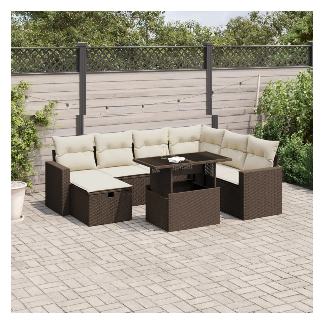 Salon de jardin 8 pcs avec coussins marron résine tressée