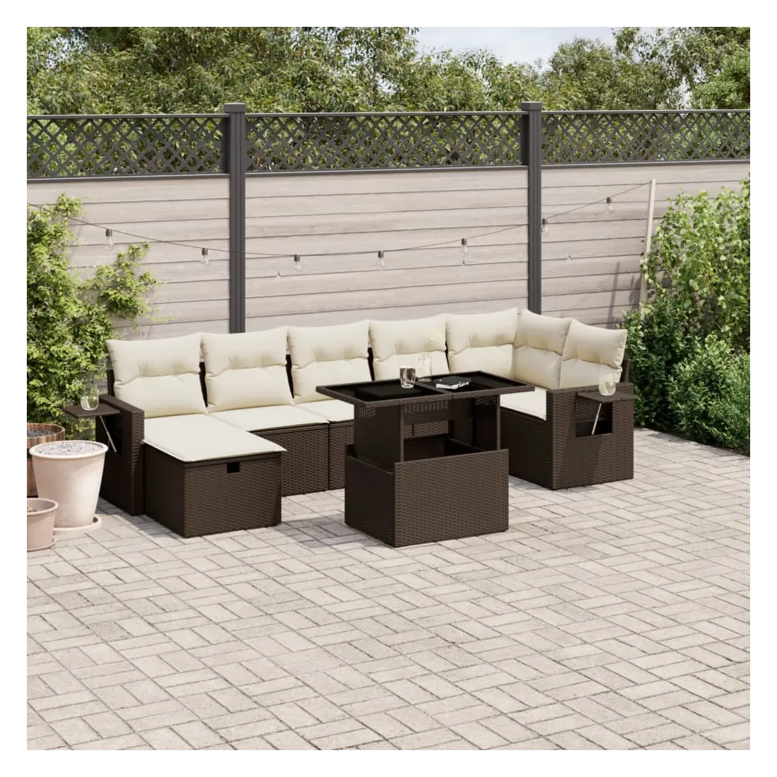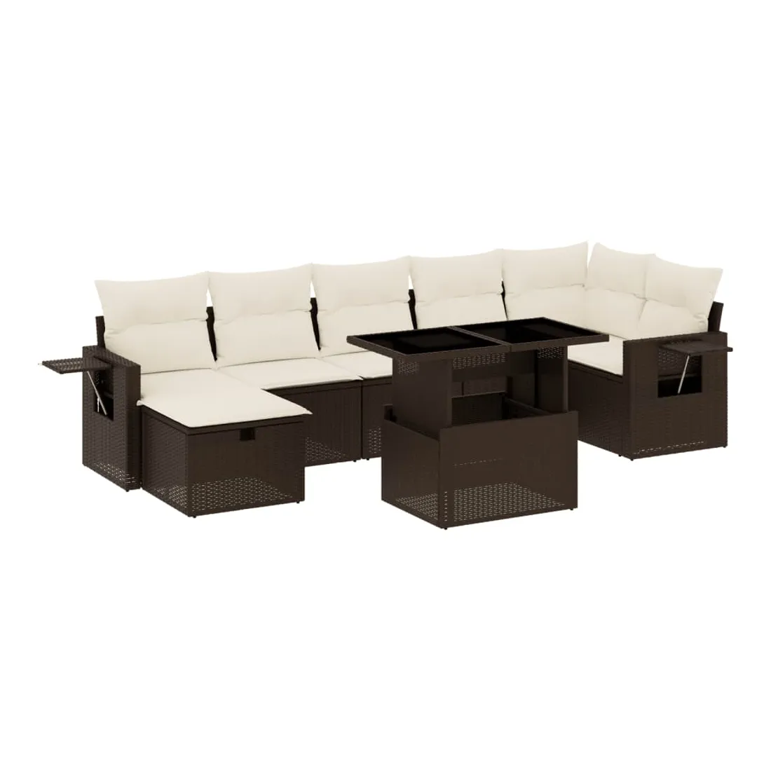 Salon de jardin 8 pcs avec coussins marron résine tressée