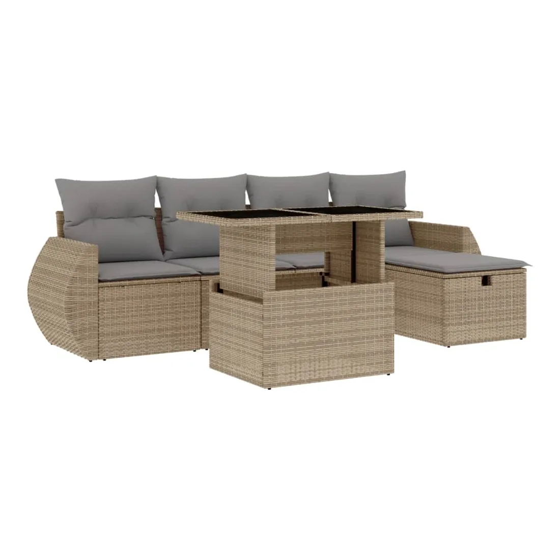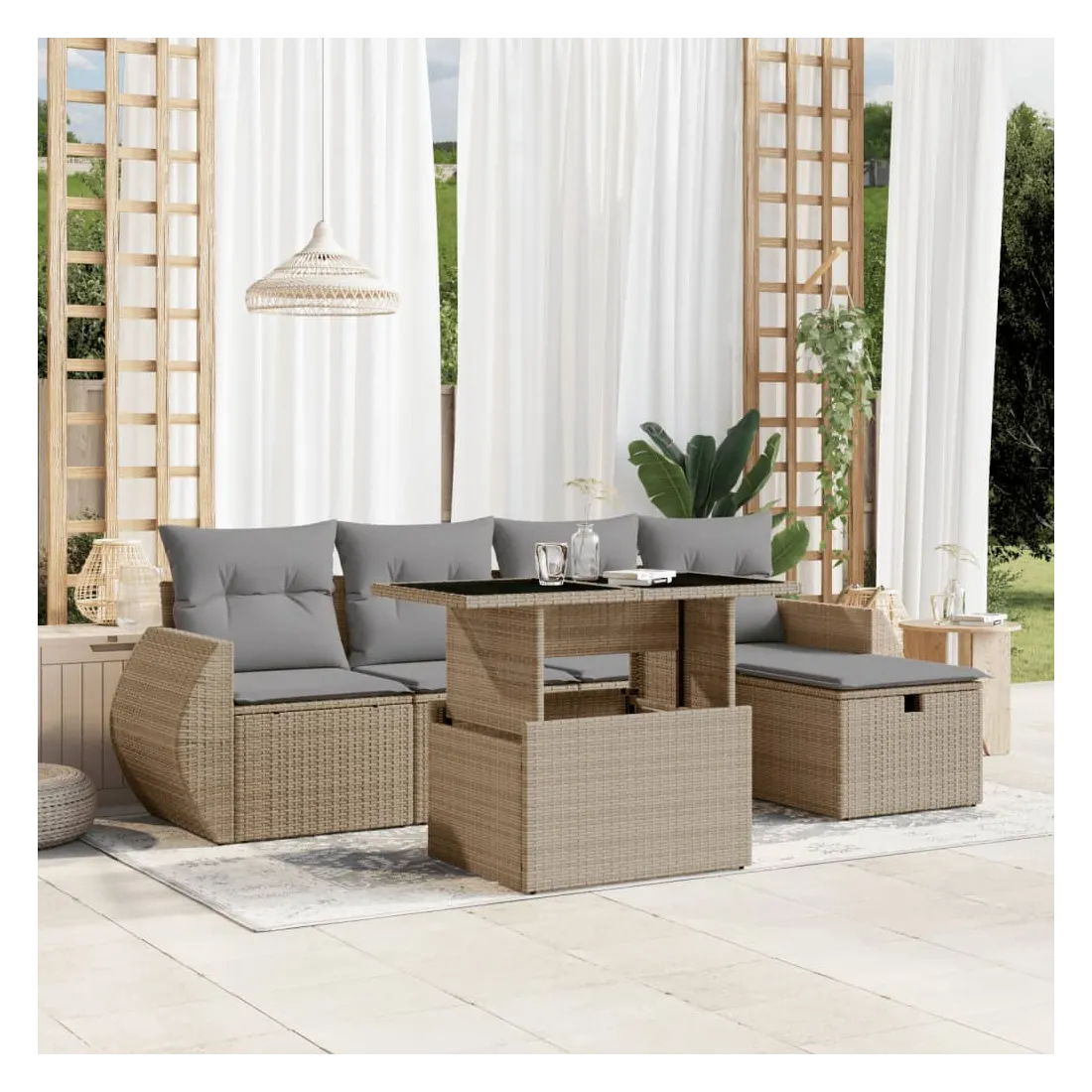 Cet ensemble de canapés de jardin est le complément parfait de votre arrière-cour, terrasse ou patio, offrant un espace confortable et accueillant pour discuter avec la famille et les amis ou simplement se détendre et profiter de l'extérieur. Matériau durable : la résine tressée, également connue sous le nom de poly rotin, est un matériau synthétique solide et nécessitant peu d'entretien qui ressemble au rotin naturel. Il est léger, facile à nettoyer et couramment utilisé pour les meubles d'extérieur en raison de sa durabilité et de ses propriétés de résistance aux intempéries.Dessus de table réglable : le dessus de table peut être soulevé pour rendre la table plus haute, ce qui transforme la table d'extérieur d'une table basse à une table de salle à manger. Elle est parfaite pour recevoir des invités ou prendre des repas à l'extérieur.Dessus en verre : le dessus de la table d'extérieur est fabriqué en verre trempé solide et durable, ce qui le rend facile à nettoyer avec un chiffon humide et ajoute une touche d'élégance à votre espace extérieur.Housse amovible et lavable : ces coussins de siège sont dotés de housses amovibles pour un lavage et un entretien faciles.Conception modulaire : cet ensemble de meubles d'extérieur a une conception modulaire, ce qui le rend complètement flexible et facile à déplacer, afin que vous puissiez créer un agencement de meubles d'extérieur personnalisé. Bon à savoir :Pour que vos meubles d'extérieur restent beaux, nous vous recommandons de les protéger avec une housse imperméable.