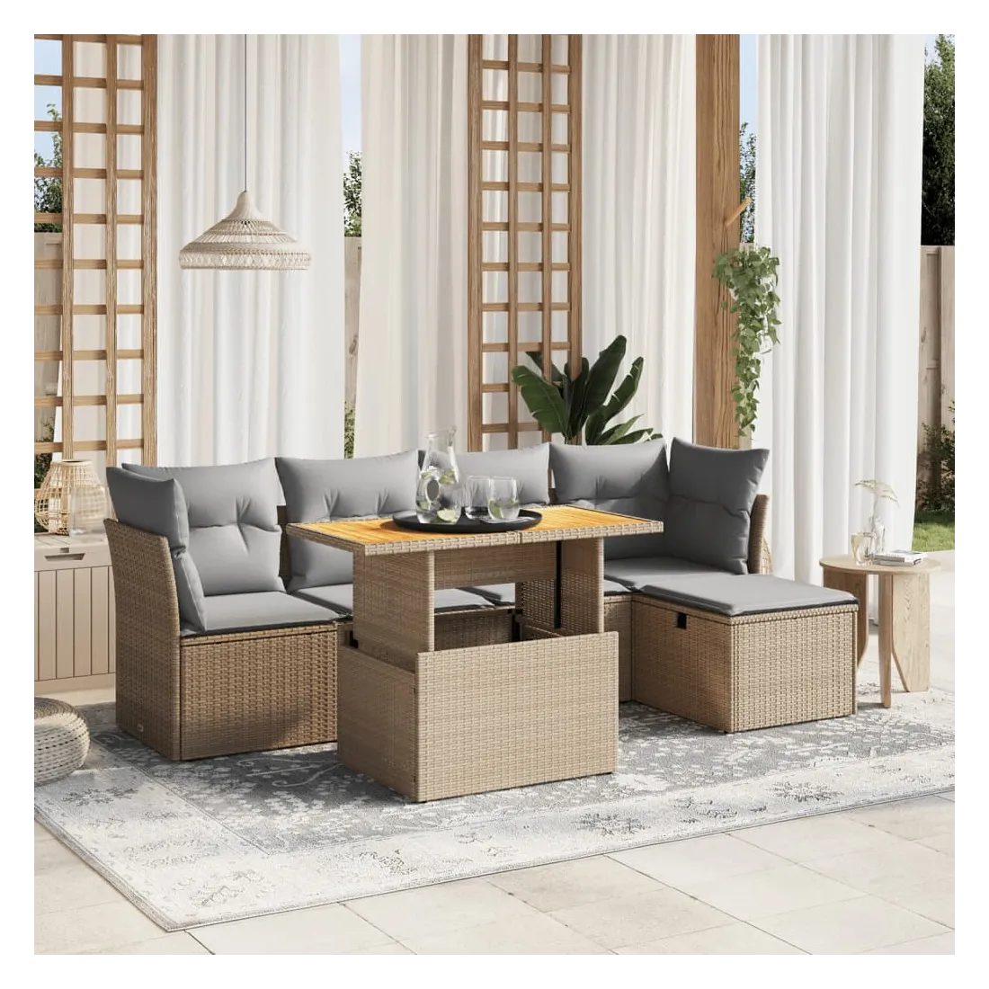 Cet ensemble de canapés de jardin est le complément parfait de votre arrière-cour, terrasse ou patio, offrant un espace confortable et accueillant pour discuter avec la famille et les amis ou simplement se détendre et profiter de l'extérieur. Matériau durable : la résine tressée, également connue sous le nom de poly rotin, est un matériau synthétique solide et nécessitant peu d'entretien qui ressemble au rotin naturel. Il est léger, facile à nettoyer et couramment utilisé pour les meubles d'extérieur en raison de sa durabilité et de ses propriétés de résistance aux intempéries.Dessus de table réglable : le dessus de table peut être soulevé pour rendre la table plus haute, ce qui transforme la table d'extérieur d'une table basse à une table de salle à manger. Elle est parfaite pour recevoir des invités ou prendre des repas à l'extérieur.Housse amovible et lavable : ces coussins de siège sont dotés de housses amovibles pour un lavage et un entretien faciles.Conception modulaire : cet ensemble de meubles d'extérieur a une conception modulaire, ce qui le rend complètement flexible et facile à déplacer, afin que vous puissiez créer un agencement de meubles d'extérieur personnalisé. Bon à savoir :Pour que vos meubles d'extérieur restent beaux, nous vous recommandons de les protéger avec une housse imperméable.