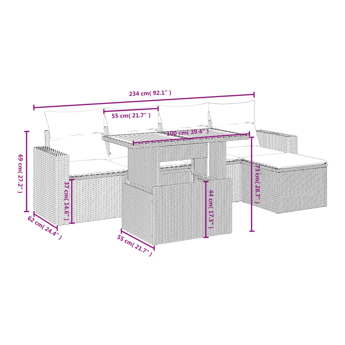 Cet ensemble de canapés de jardin est le complément parfait de votre arrière-cour, terrasse ou patio, offrant un espace confortable et accueillant pour discuter avec la famille et les amis ou simplement se détendre et profiter de l'extérieur. Matériau durable : la résine tressée, également connue sous le nom de poly rotin, est un matériau synthétique solide et nécessitant peu d'entretien qui ressemble au rotin naturel. Il est léger, facile à nettoyer et couramment utilisé pour les meubles d'extérieur en raison de sa durabilité et de ses propriétés de résistance aux intempéries.Dessus de table réglable : le dessus de table peut être soulevé pour rendre la table plus haute, ce qui transforme la table d'extérieur d'une table basse à une table de salle à manger. Elle est parfaite pour recevoir des invités ou prendre des repas à l'extérieur.Housse amovible et lavable : ces coussins de siège sont dotés de housses amovibles pour un lavage et un entretien faciles.Conception modulaire : cet ensemble de meubles d'extérieur a une conception modulaire, ce qui le rend complètement flexible et facile à déplacer, afin que vous puissiez créer un agencement de meubles d'extérieur personnalisé. Bon à savoir :Pour que vos meubles d'extérieur restent beaux, nous vous recommandons de les protéger avec une housse imperméable.